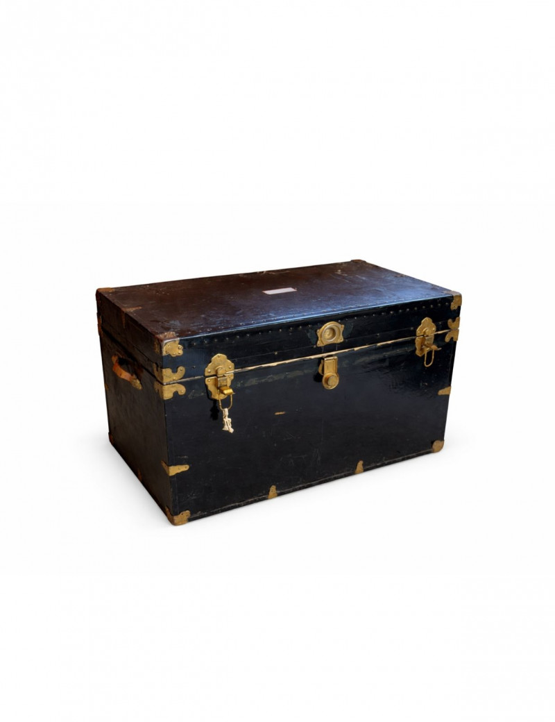 Lot # 69 - Vintage Black Steamer Trunk Chest – Brass Hardware – Storage Starting Bid: $ 5.00 Bids: This sale will end in: |