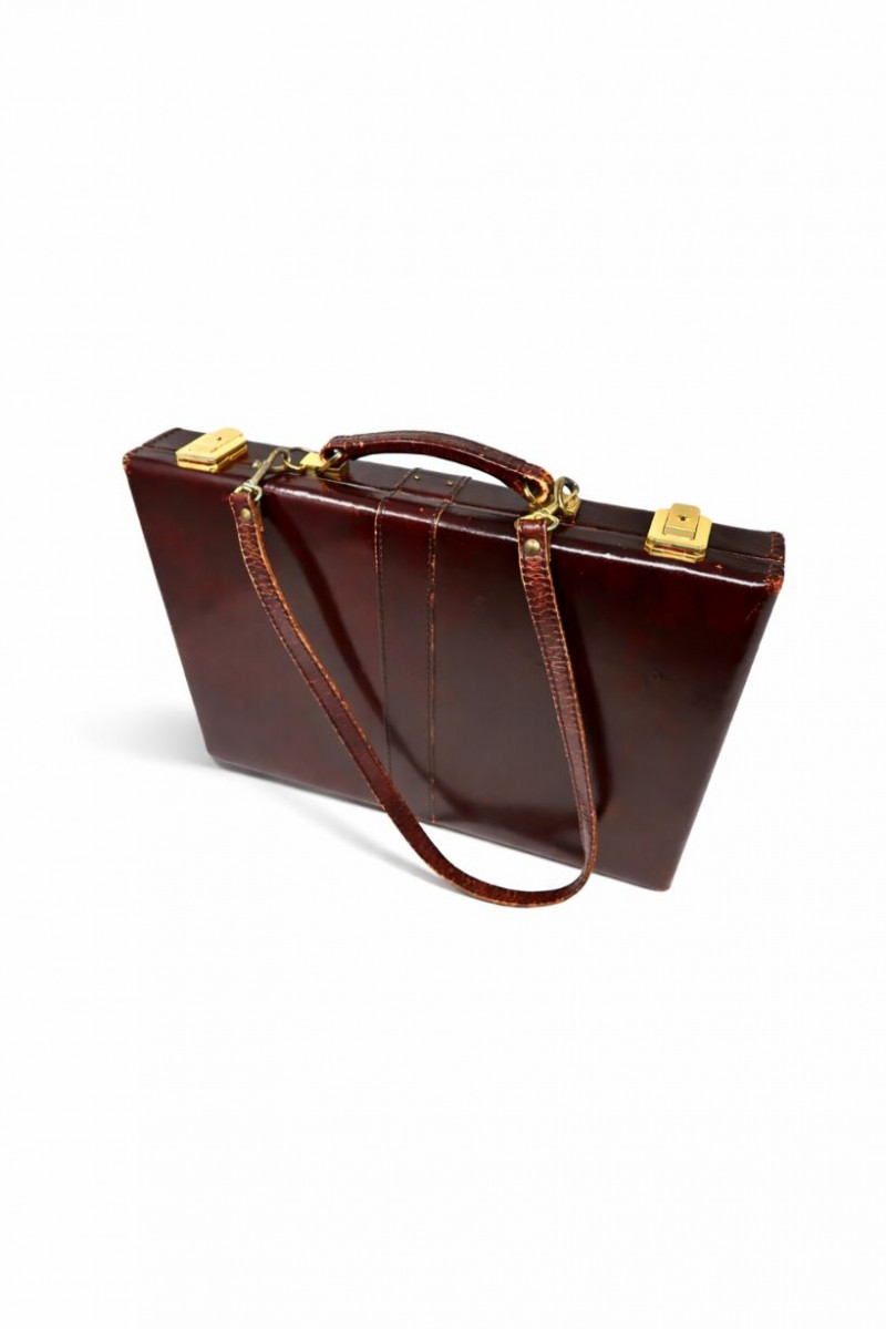 Lot # 15 - Vintage Top Grain Cowhide Leather Briefcase w/ Strap Starting Bid: $ 5.00 Bids: This sale will end in: |