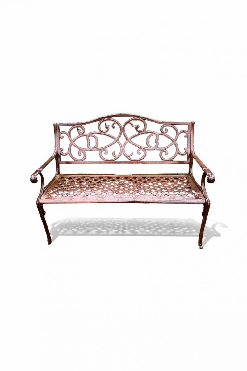 Lot # 28 - Decorative Cast Aluminum Outdoor Garden Bench With Scrollwork Back Starting Bid: $ 5.00 Bids: This sale will end in: |