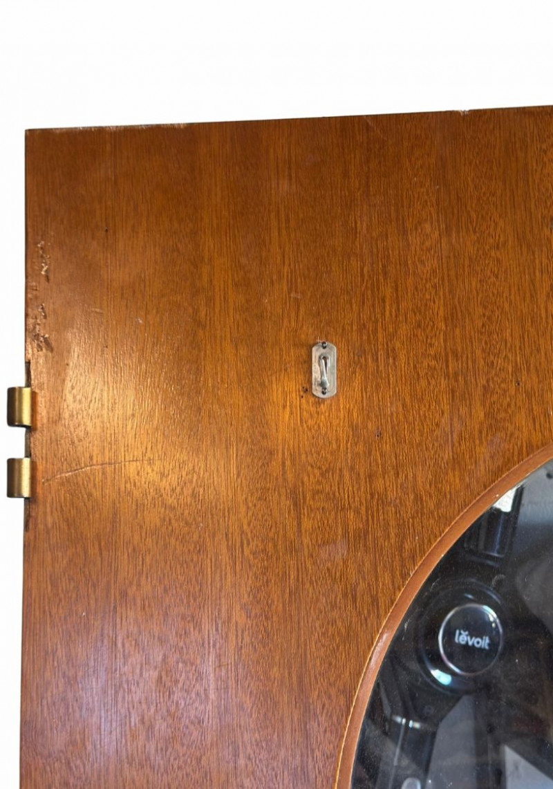 Good vintage condition with age-appropriate wear. Surface scuffs, finish variation, and light marks consistent with prior use. Hardware present. Glass intact. No major structural issues observed.