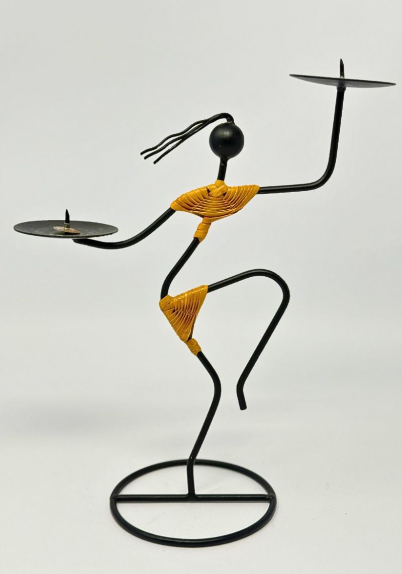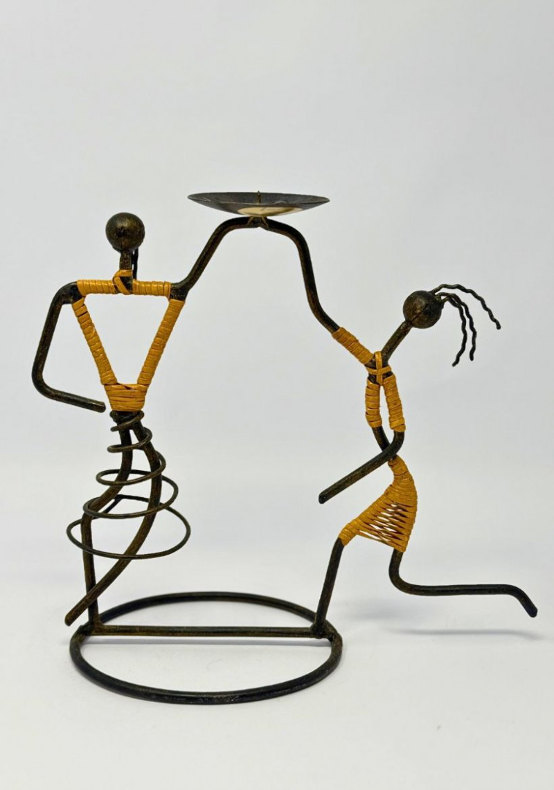 Danish iron and cane figurative candleholders gained popularity in the mid-20th century as part of the Scandinavian modern movement, emphasizing hand-crafted forms, expressive silhouettes, and everyday objects elevated to sculptural art. Makers such as Laurids Lønborg and related workshops helped define this playful yet refined style, now highly collectible among mid-century design enthusiasts.