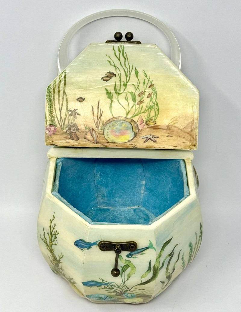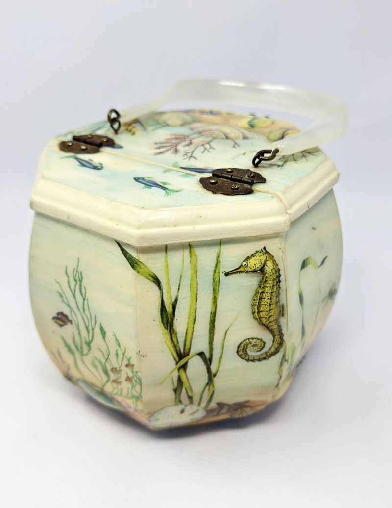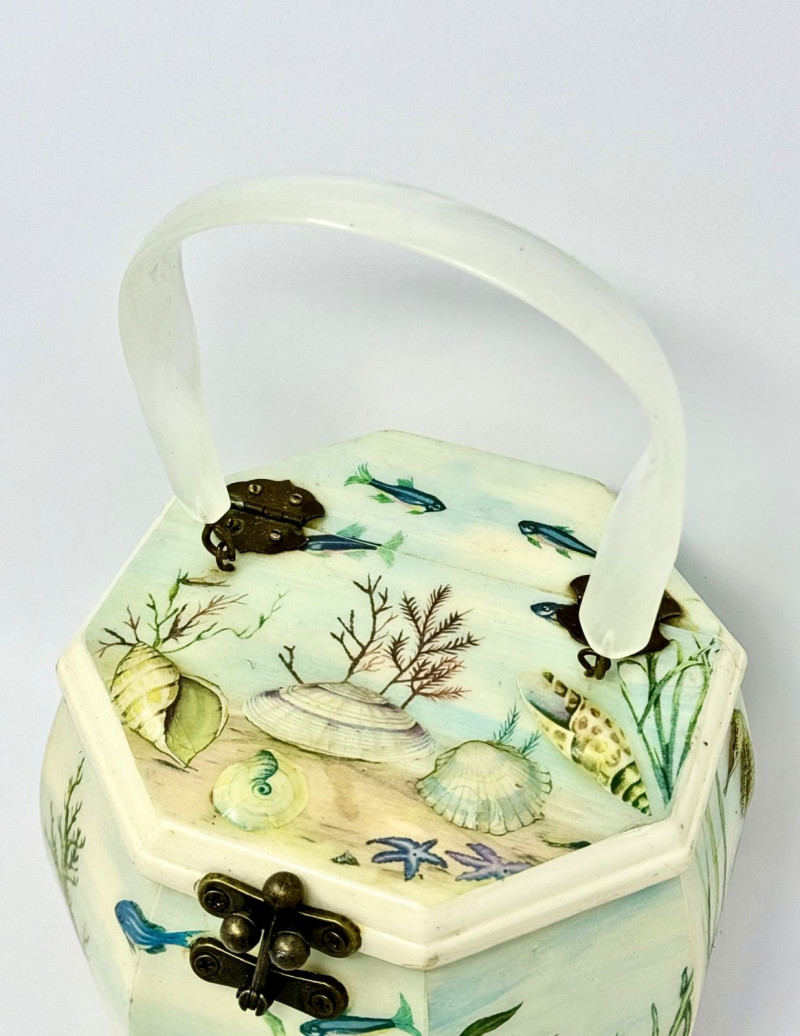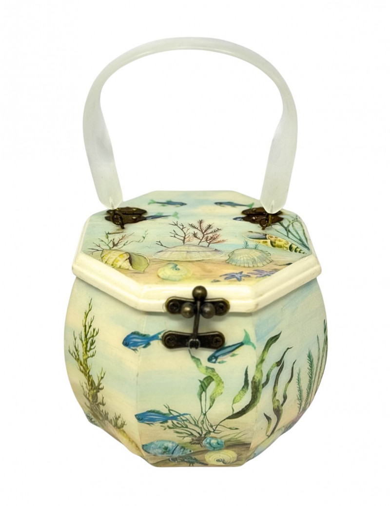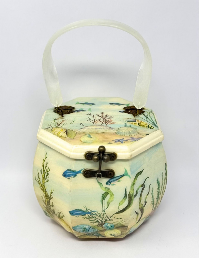Lot # 26 - Annie Laurie Palm Beach Hand-Painted Wooden Box Purse w/ Lucite Handle