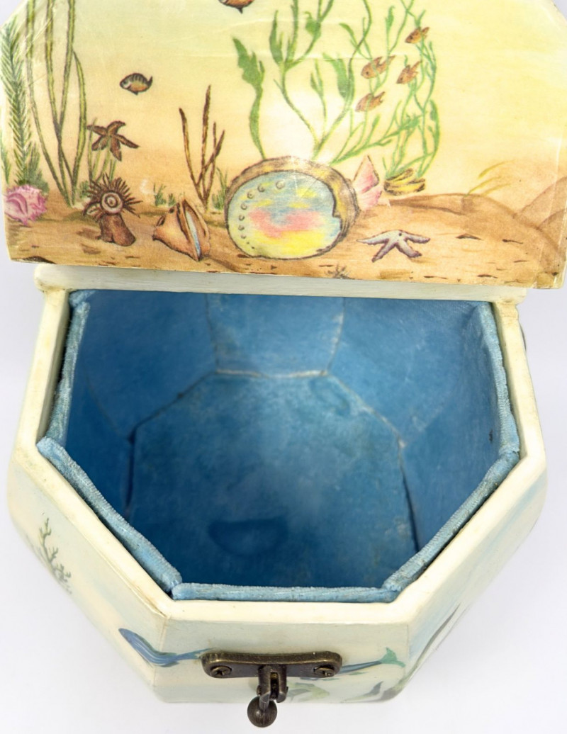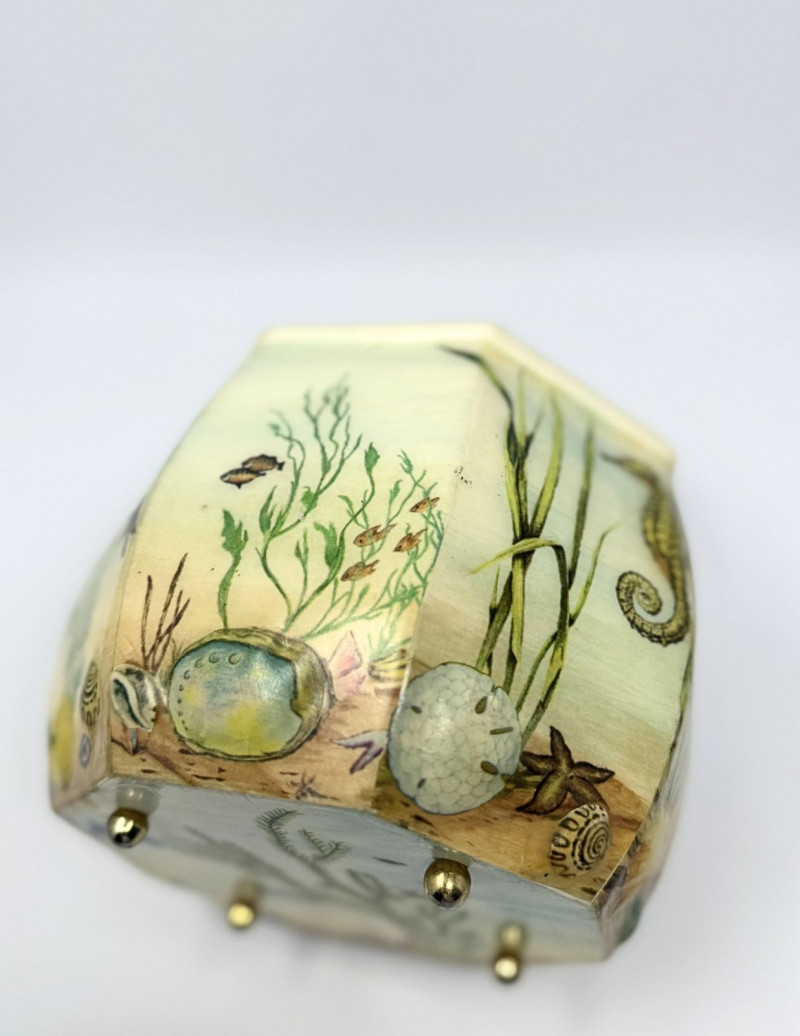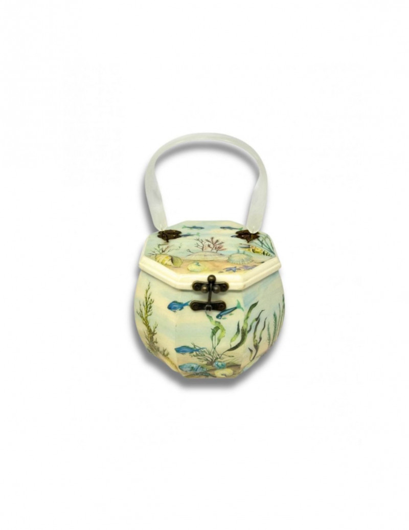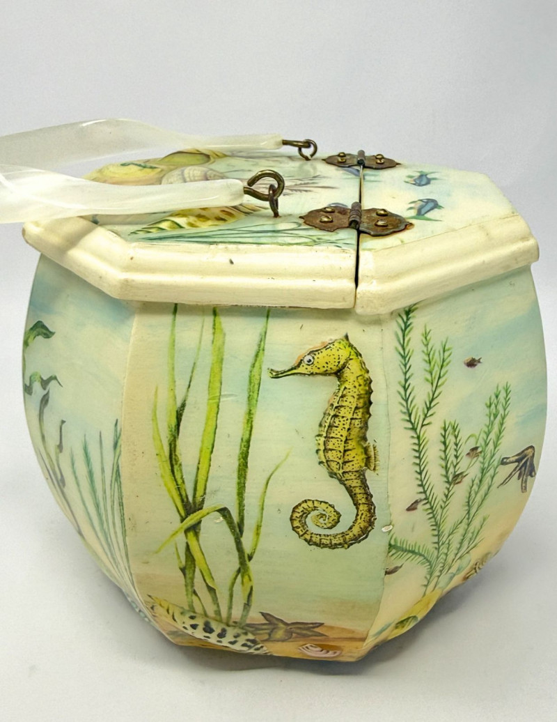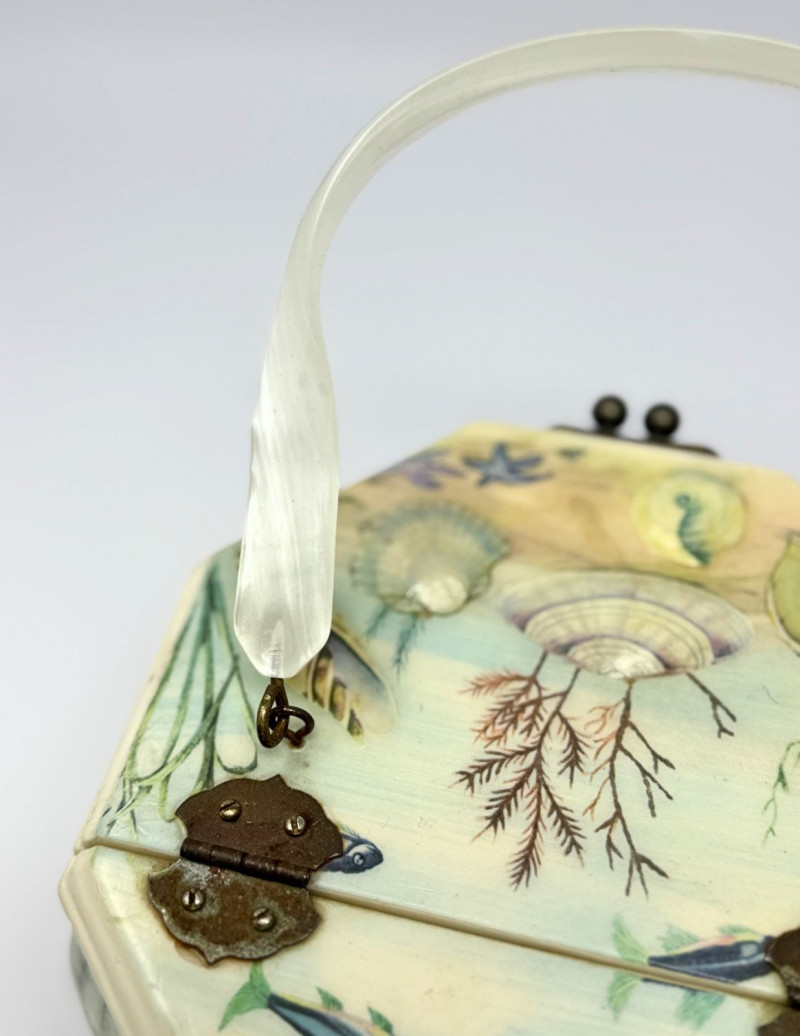 Lot # 26 - Annie Laurie Palm Beach Hand-Painted Wooden Box Purse w/ Lucite Handle