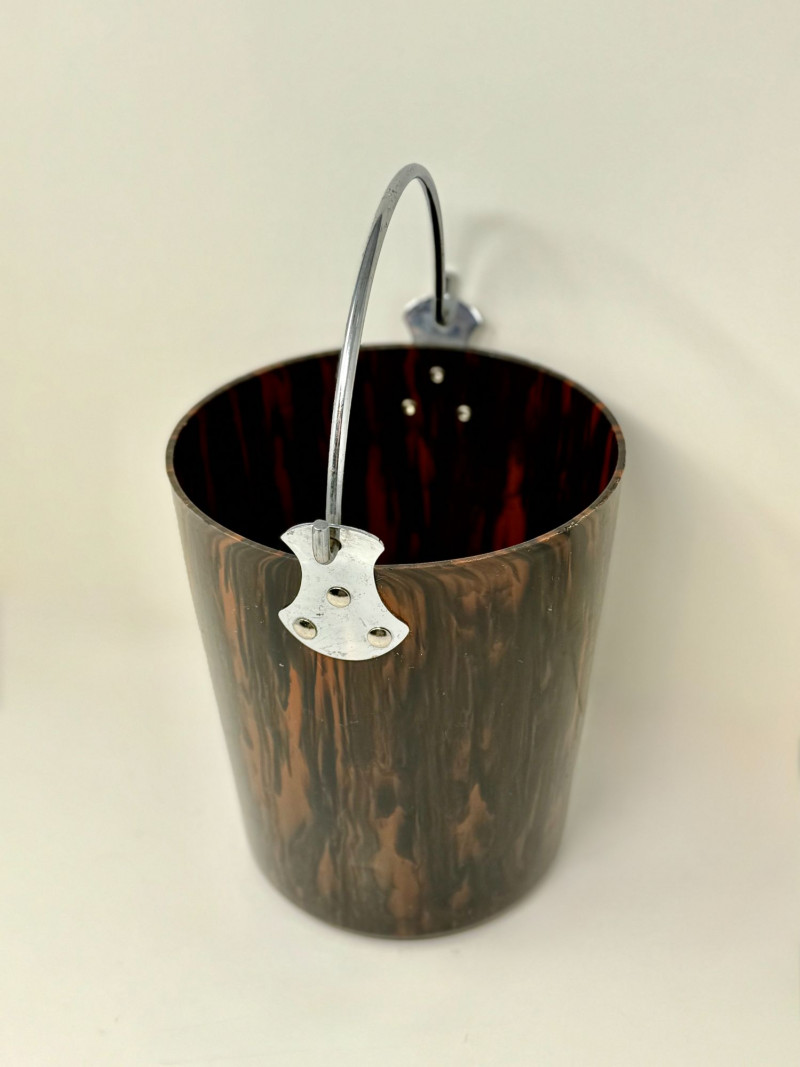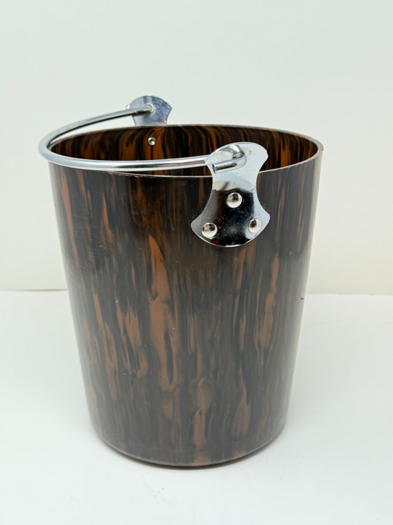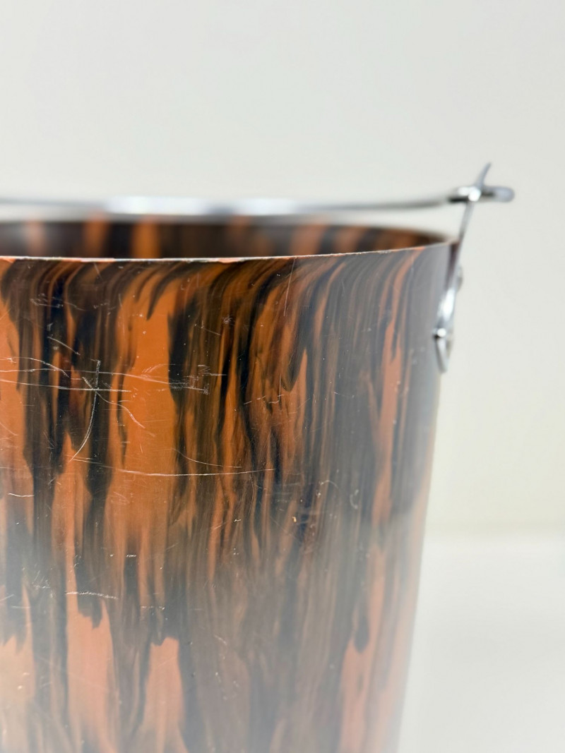 Lot # 13 - Rare 1940s Brown Marbled Bakelite Ice Bucket with Chrome Handle
