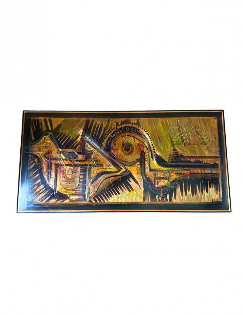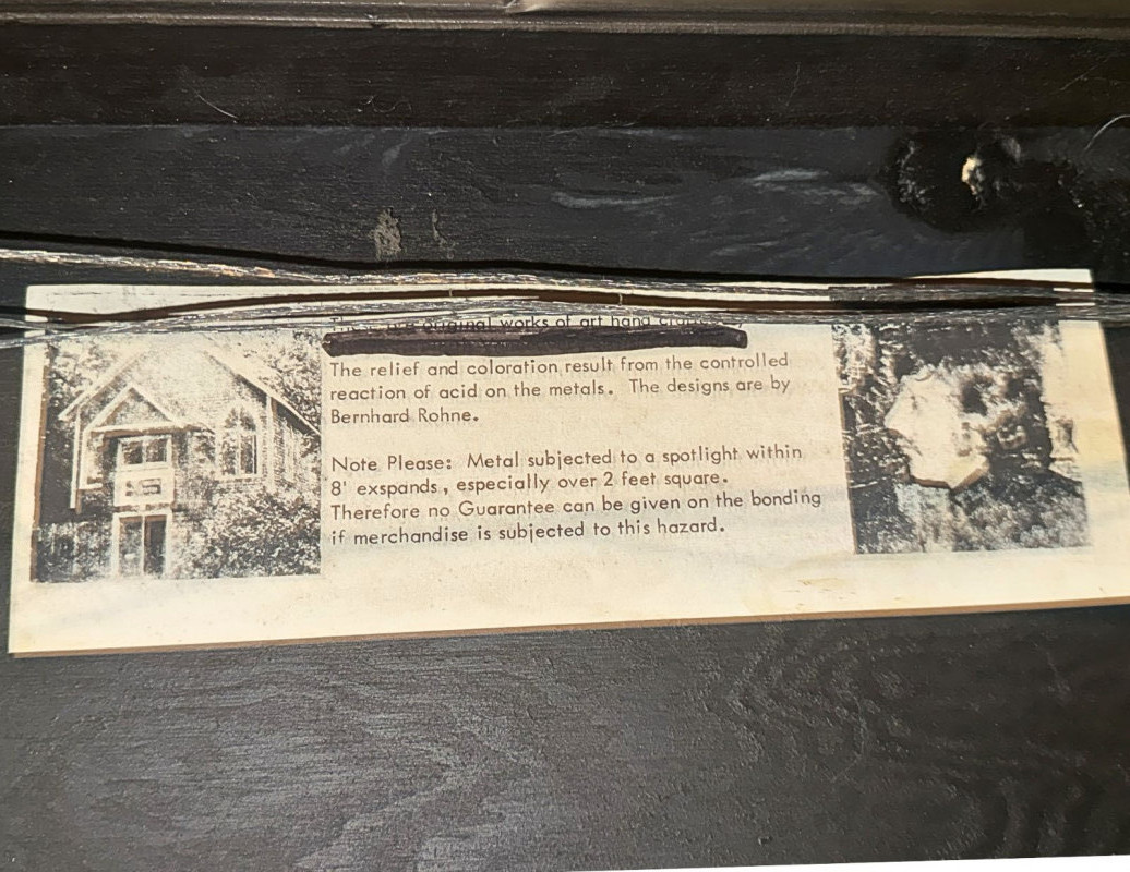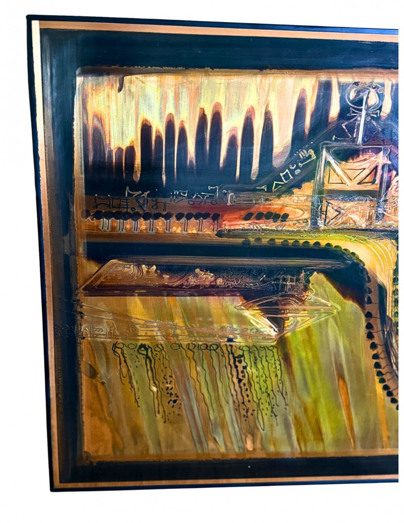 Lot # 7 - Bernhard Rohne 1973 Etched Brass Wall Art with Enamel Detail Est $1000