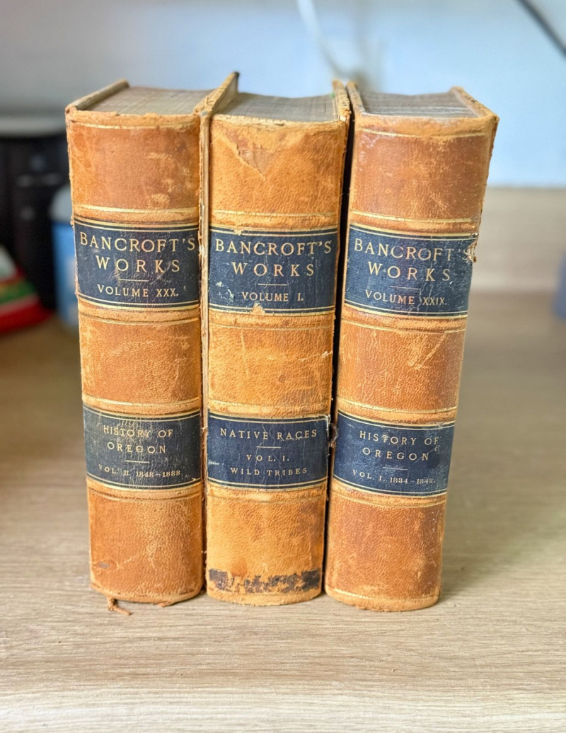 1880s Hubert Howe Bancroft First Edition Leather Books – History of Oregon & Native Races (3 Volumes)