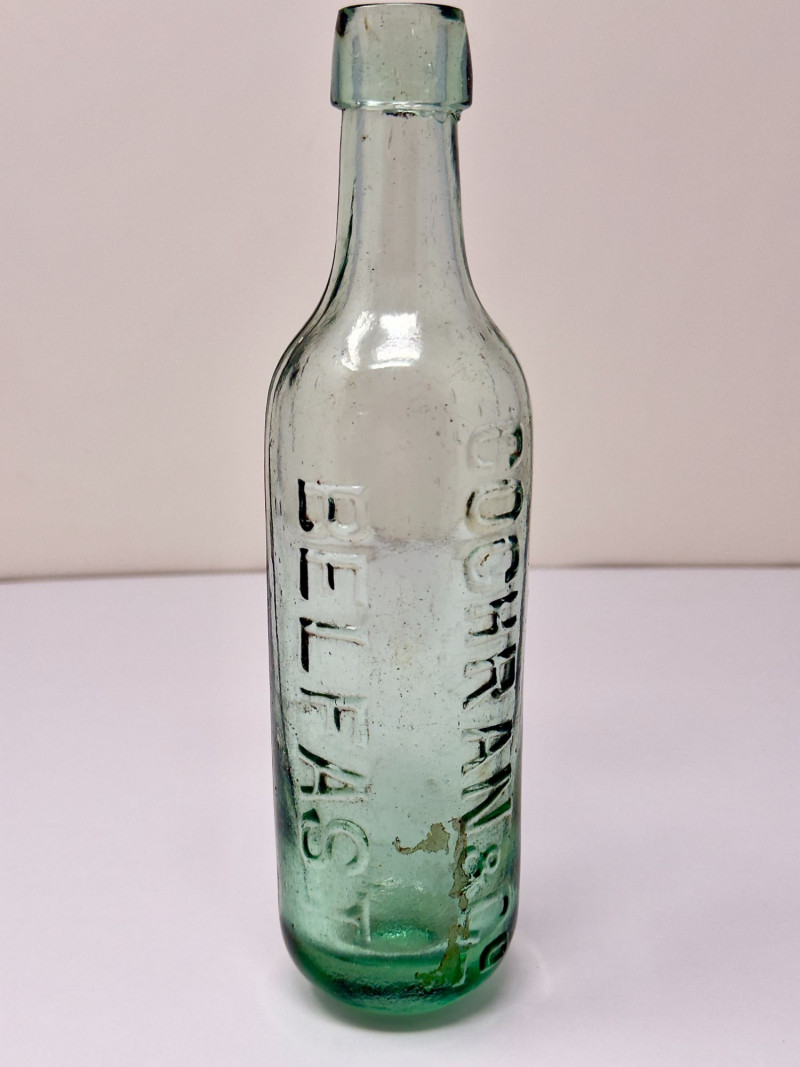 • Cochran & Co. Belfast bottle: Torpedo-shaped bottles were designed to rest on their side to keep corks wet, preserving carbonation—an early solution before modern caps.