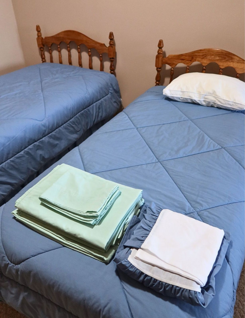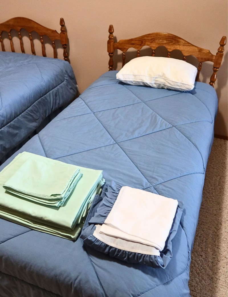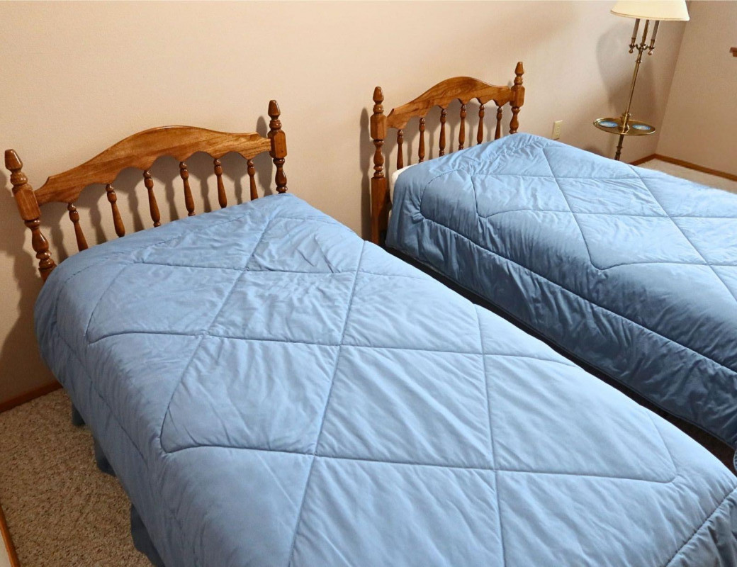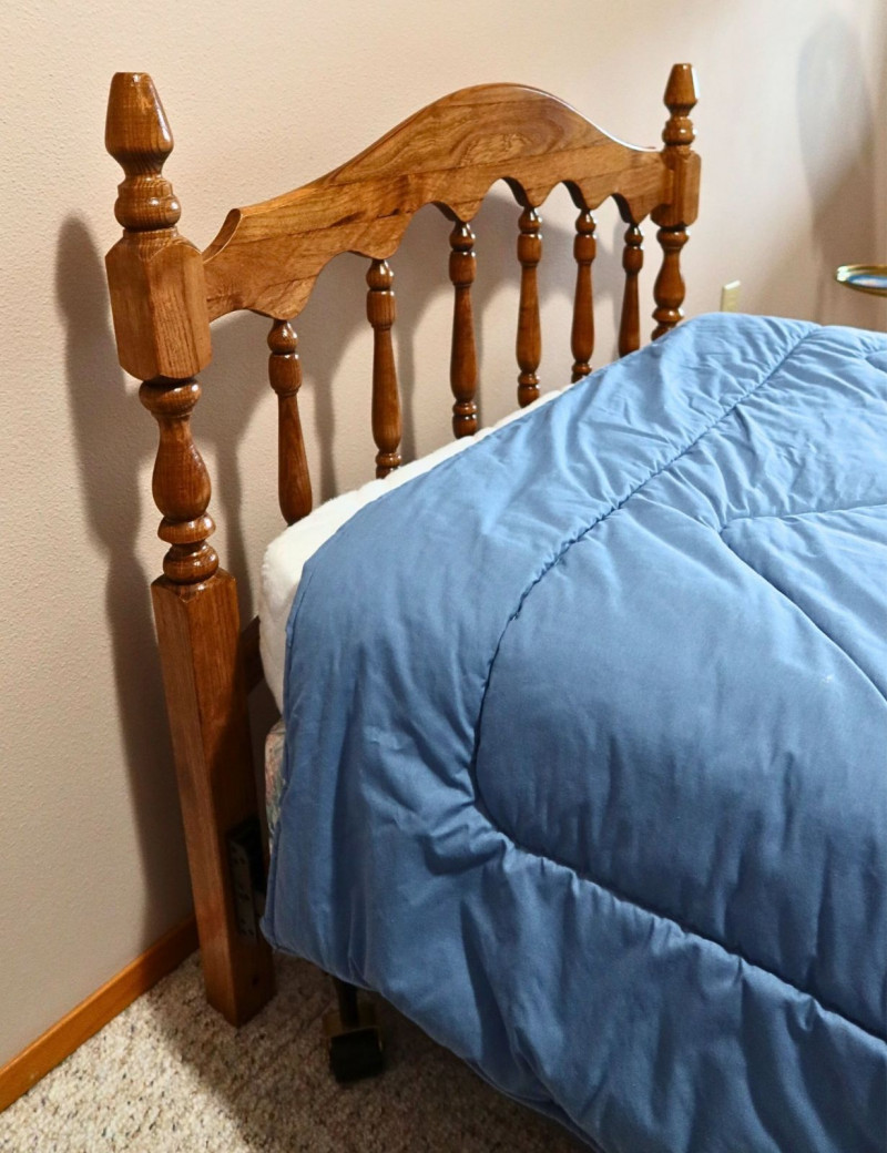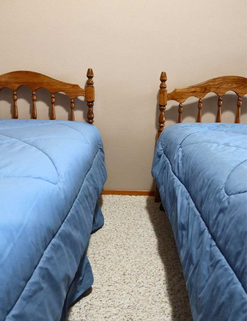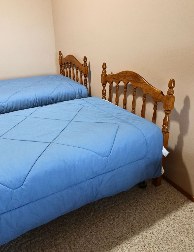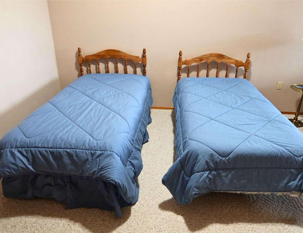 Pair of Vintage Twin-Size Spindle Headboard Beds with Mattresses & Linens Matching pair of vintage twin-size beds featuring traditional solid wood spindle headboards with turned finials and curved crest rails. The warm wood finish and classic spindle design reflect timeless American traditional styling commonly found in quality bedroom furniture. This lot offers a complete ready-to-use bedroom setup, ideal for guest rooms, cabins, vacation homes, or furnished rentals. The headboards feature a graceful arched crest rail with turned spindles and decorative finials, giving them a charming traditional look that pairs well with many interior styles from farmhouse to classic traditional. Measurements: Style: Traditional spindle / colonial style bedroom furniture. Condition: Excellent pre-owned condition. From a clean, smoke-free and pet-free home. Mattresses, linens, and frames appear well maintained and clean. Wood frames show light wear consistent with normal household use. Buyers are encouraged to review photos for details. Estimated Value: Complete vintage bed setups with headboards, frames, mattresses, and linens typically sell in the $350–$700 range for the pair, depending on condition and completeness.