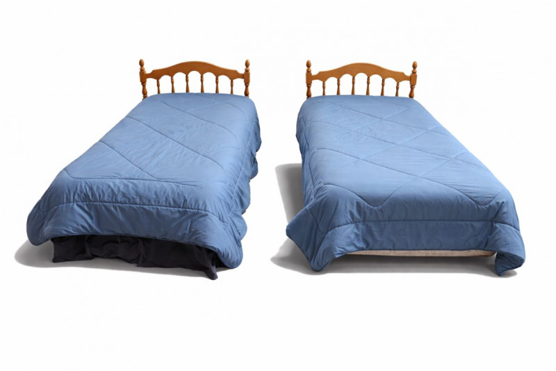 Lot # 43 - Pair of Vintage Twin-Size Spindle Headboard Beds Mattresses & Linens