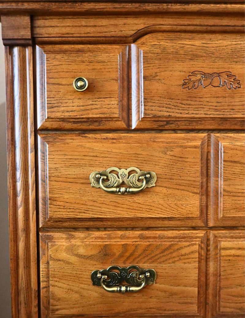 Vintage Oak Highboy Dresser with Brass Hardware
