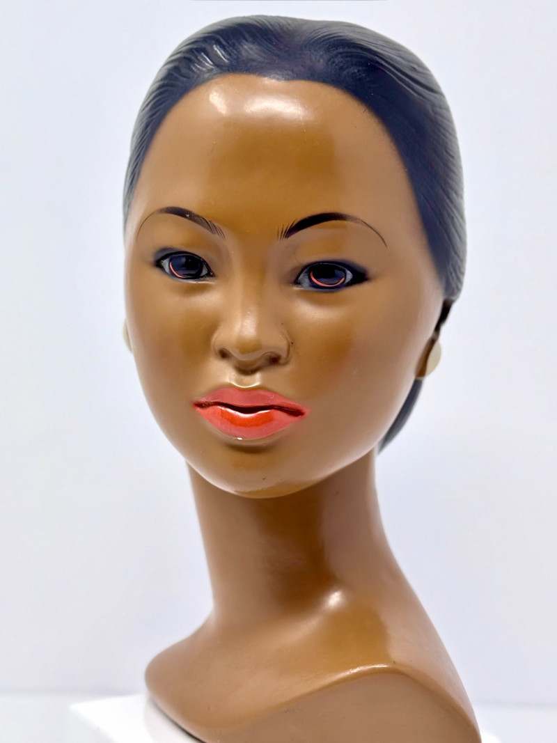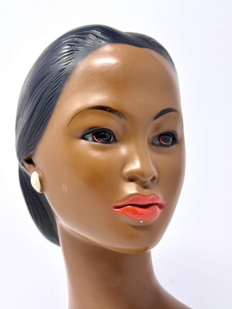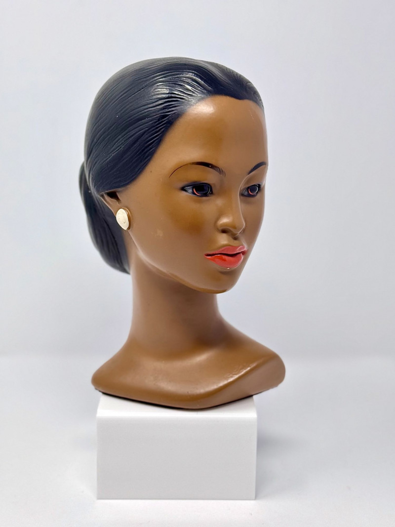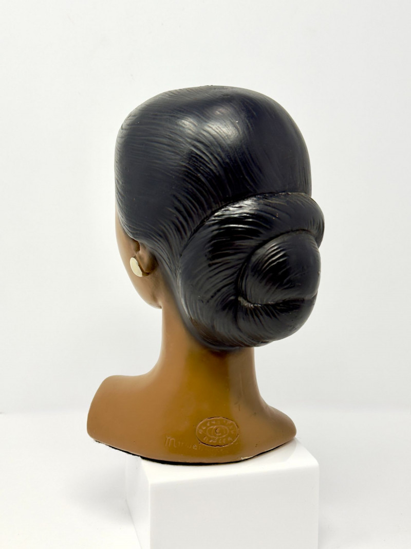 Vintage Marwal Chalkware Polynesian Head Sculpture This vintage chalkware Polynesian head was produced by Marwal Industries, a well-known American maker of decorative figurines and busts during the mid-20th century. Rendered with softly stylized facial features, smooth contours, and a serene expression, this piece reflects the popular Tiki and Hawaiian revival aesthetic that surged in the United States during the 1950s and 1960s. Finished in warm brown tones with painted facial details, the sculpture was originally intended as a decorative display object and is often associated with mid-century interiors, tiki lounges, bar decor, or collector displays. Marwal chalkware pieces were commonly sold in gift shops and department stores and are now increasingly collectible, particularly figural heads and Polynesian-inspired forms. This example presents as a classic display bust, well-proportioned and visually striking, with a timeless mid-century presence. Dimensions: Approx. 10" H x 5.5" W x 5" D Condition: Very good vintage condition with minor surface wear consistent with age. No chips or cracks observed. Paint remains intact with light age-appropriate patina. Please review photos for full condition details. Historical Notes: Marwal Industries was active from the 1940s through the 1960s and became widely known for chalkware figurines, religious pieces, celebrity busts, and decorative heads. Polynesian and Tiki-themed objects gained popularity alongside postwar travel culture and the rise of tiki bars across the U.S., making pieces like this emblematic of the era’s fascination with island-inspired design. Estimated Value: $60–$120