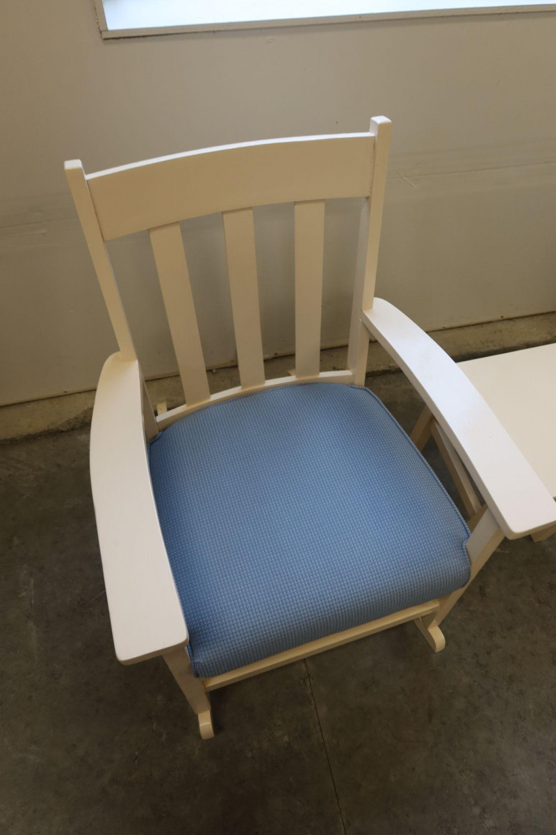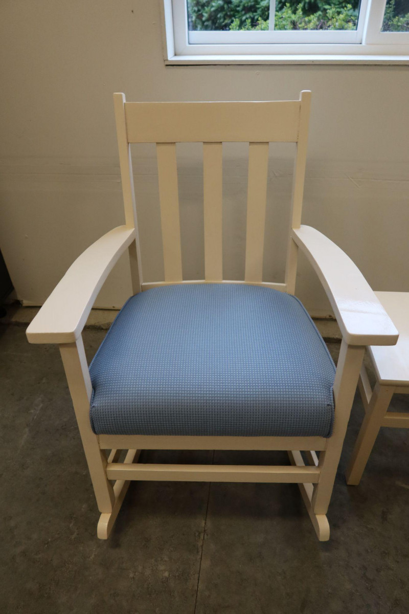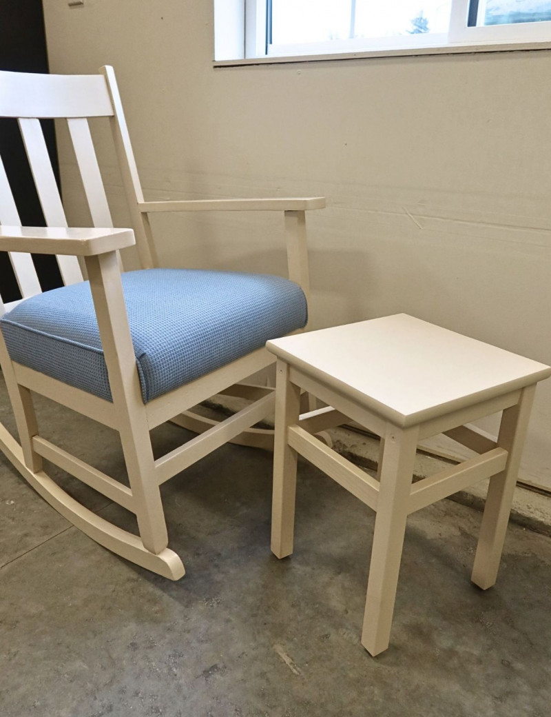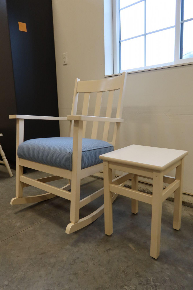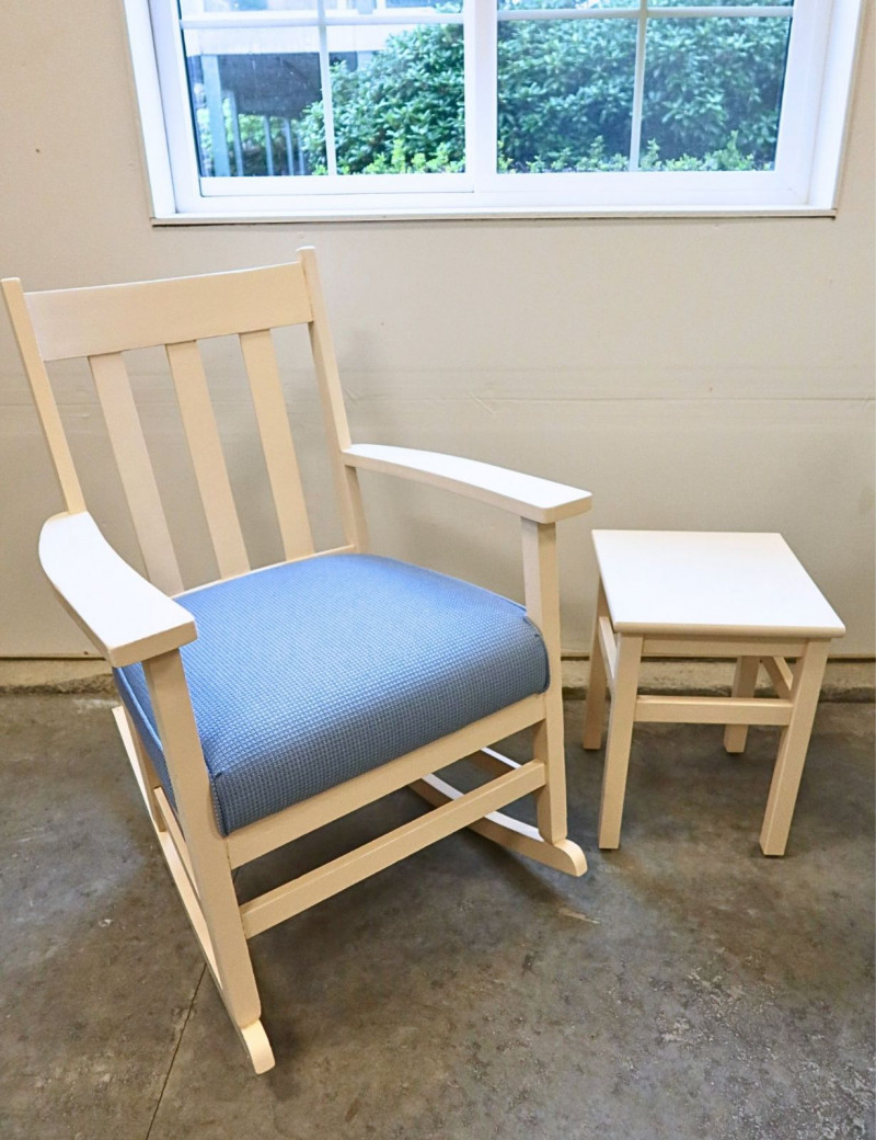 Vintage Nursery Rocking Chair & Footstool / Table Set — Refinished & Reupholstered (1999)