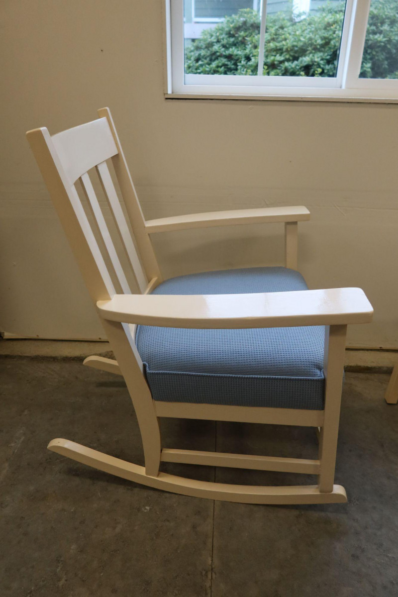 Rocking chairs have been a staple of American homes since the early 18th century and became especially popular in nurseries throughout the 20th century. Many families kept a dedicated rocker for reading stories or soothing babies to sleep, making pieces like this both practical furniture and sentimental household staples.