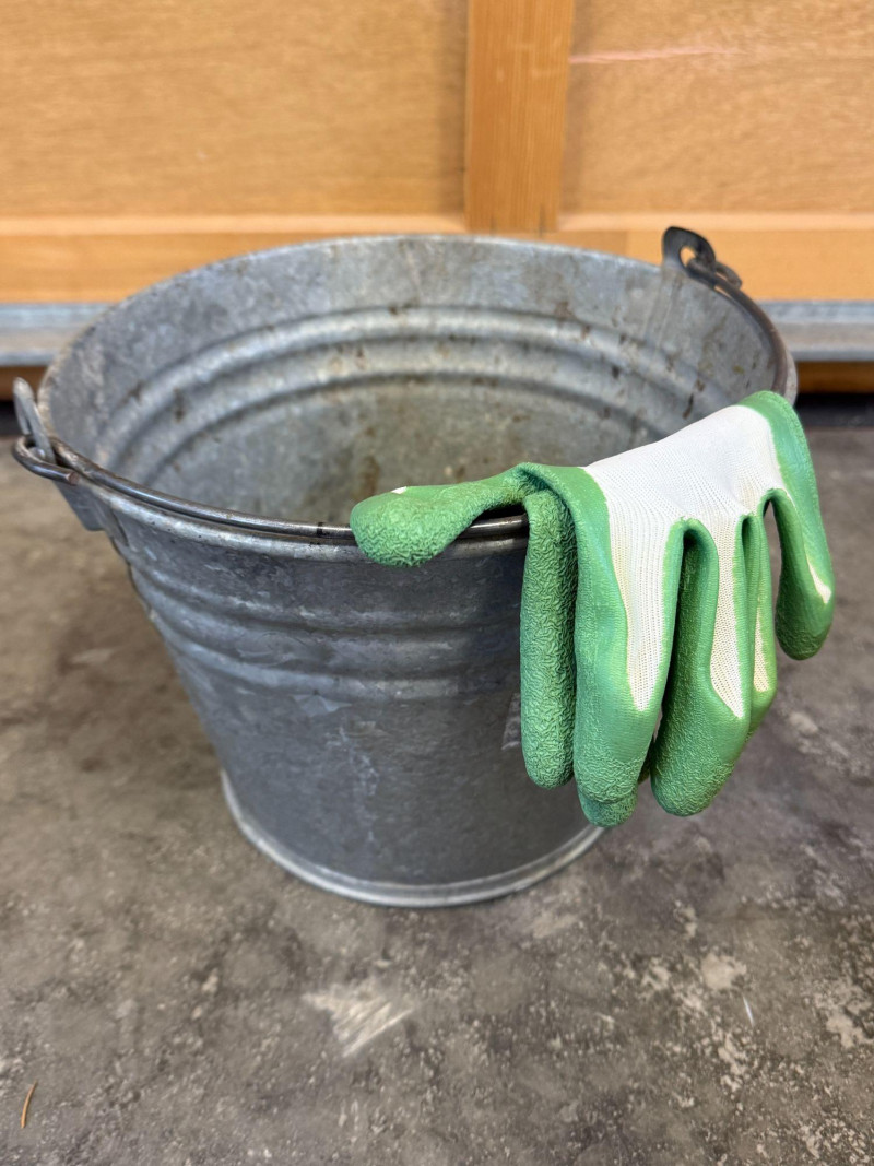 • Metal bucket with gardening gloves