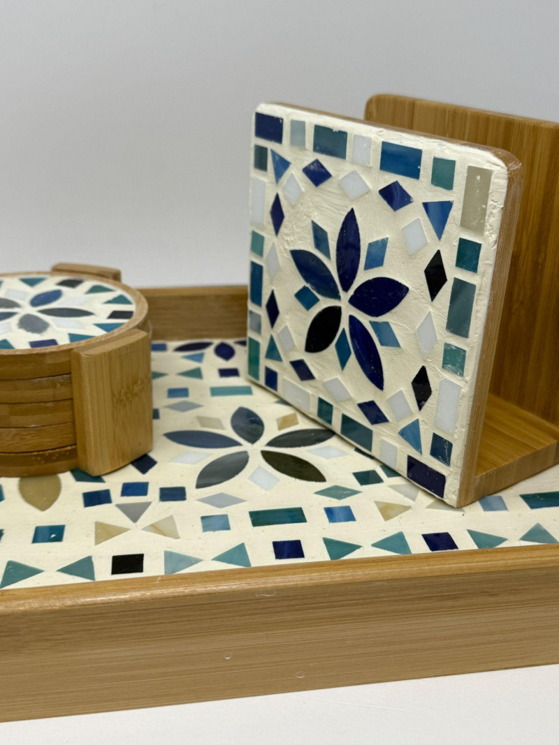 • Matching mosaic coaster set with holder