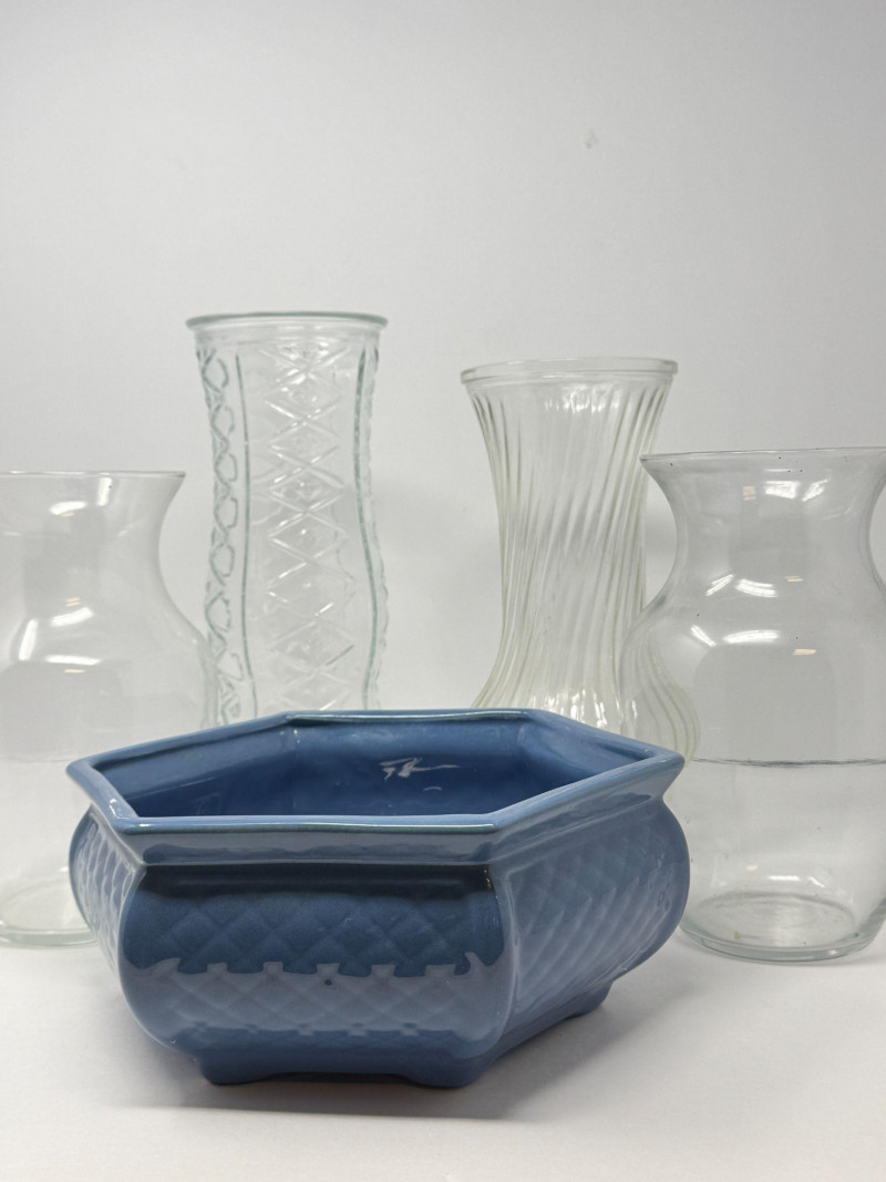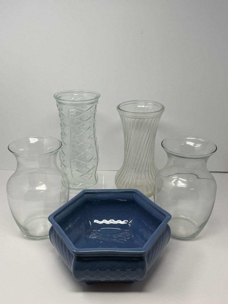 • 4 decorative clear glass vases (various styles)