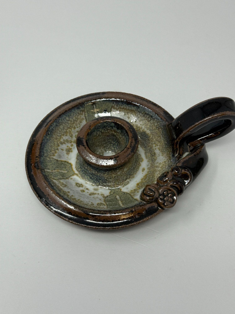 • Handcrafted stoneware candle holder with loop handle