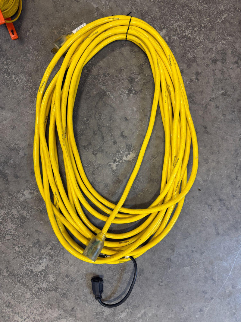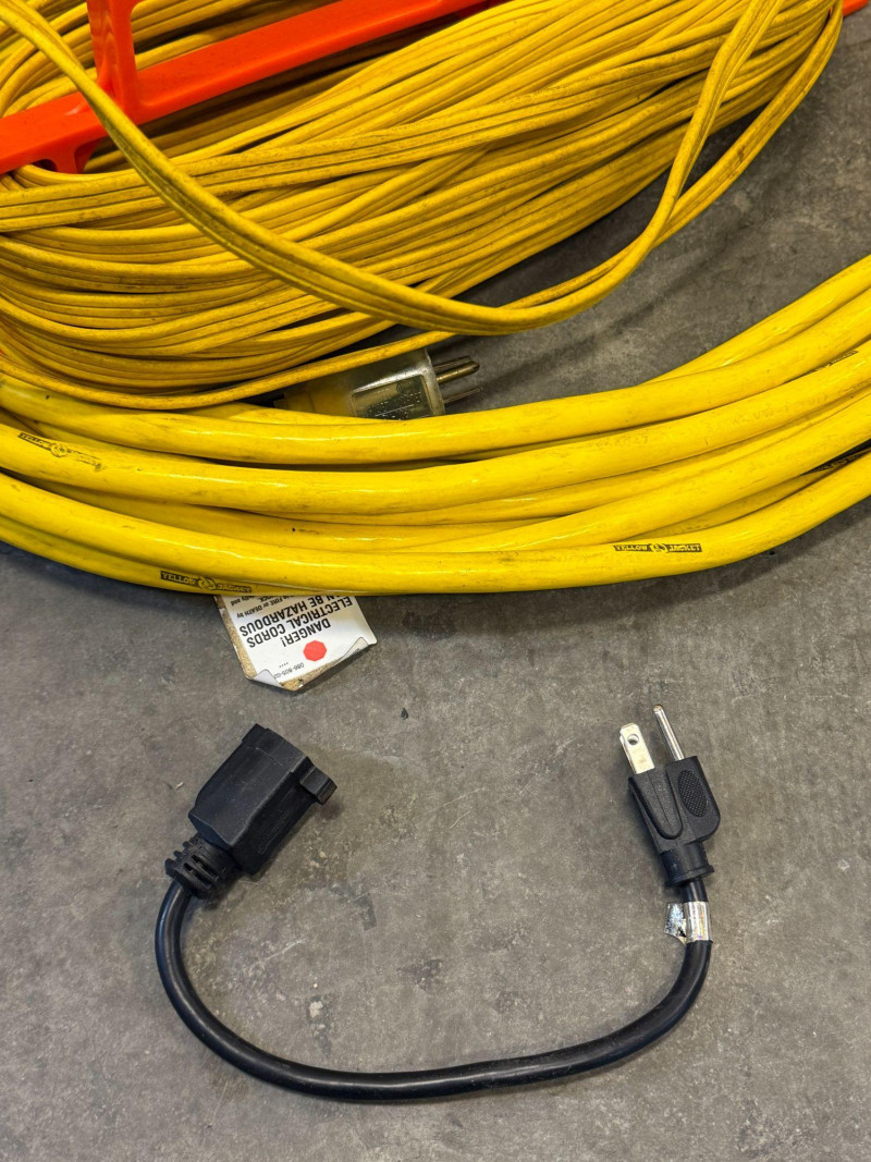 Measurements (Range): Extension cords approximately: ~50 ft Yellow Jacket extension cord (loose coil) ~100 ft Yellow Jacket extension cord on reel Condition: Historical Note: