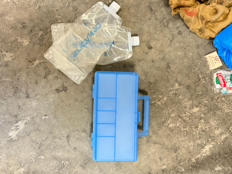 Fishing & Camping Gear Lot w/ Coleman Lantern & Stove Description: Features: Coleman double mantle propane lantern with box BernzOmatic Porta Chef propane cook stove Fishing rod with spinning reel Fishing landing net Folding travel camp chair with footrest Fishing rod carrying case Tent poles and tarp Coleman lantern mantles and accessories Rope and utility cords Blue plastic tackle/storage box Water storage pouches Measurements (Range): Condition: Historical Note: