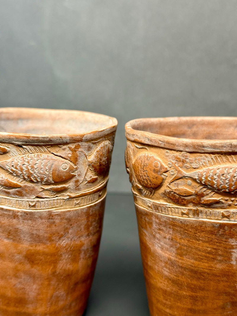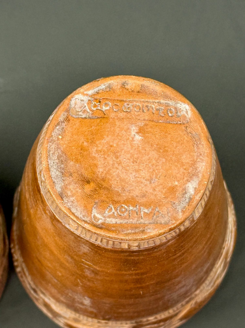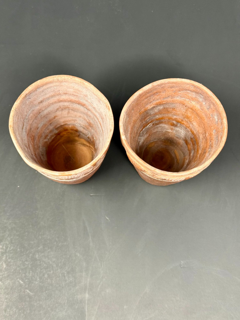 Terracotta cups: Approx. 4" H x 3.25" diameter each