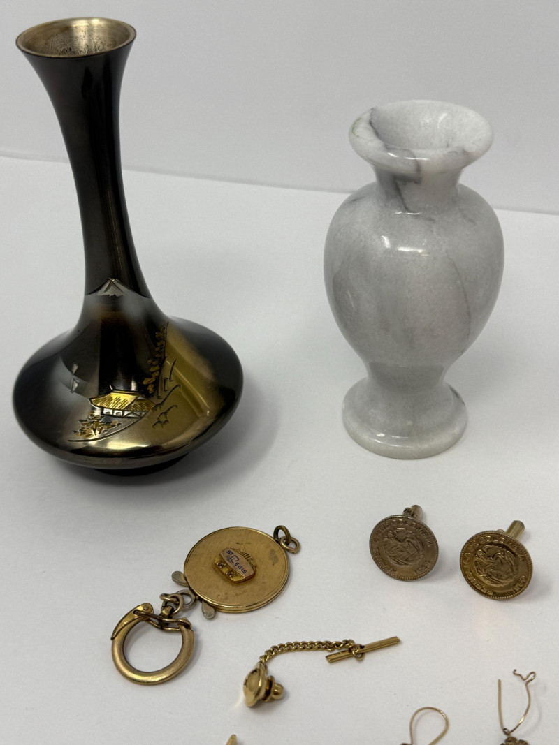 Lot # 48 - Vintage Jewelry & Vase Lot – Pins, Cufflinks, Marble