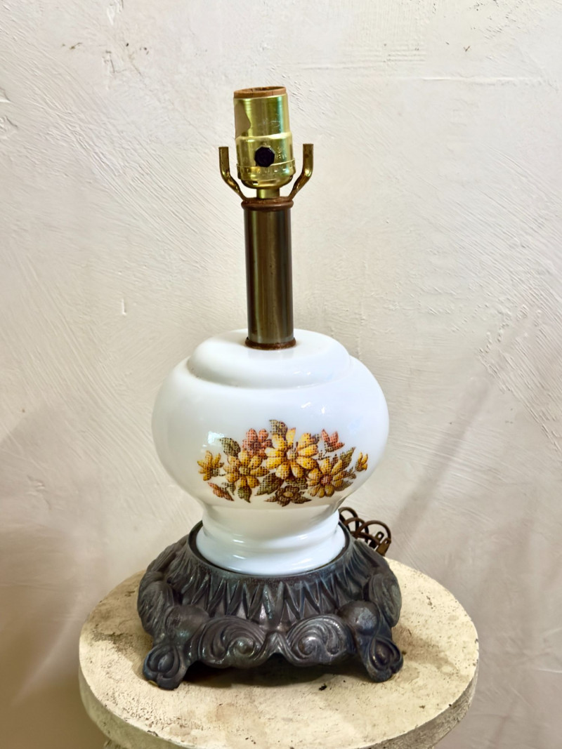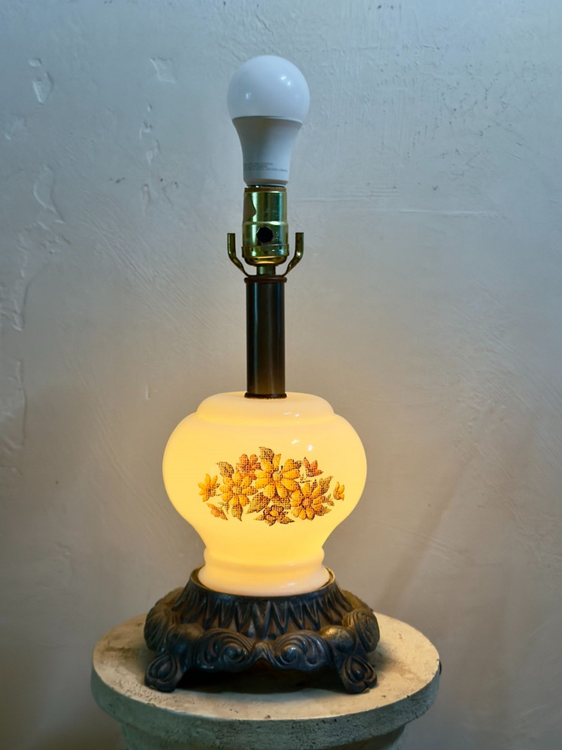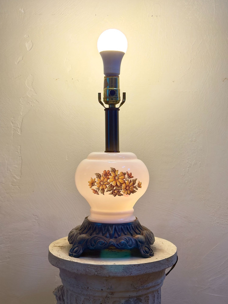 Floral milk glass lamp: Approx. 14–16" H