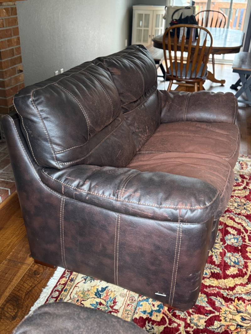 Tolino is known for producing durable, comfortable seating with an emphasis on affordability and everyday use. Leather and faux leather loveseats like this became especially popular in the 2000s–2010s for their durability, easy maintenance, and relaxed, family-friendly design.