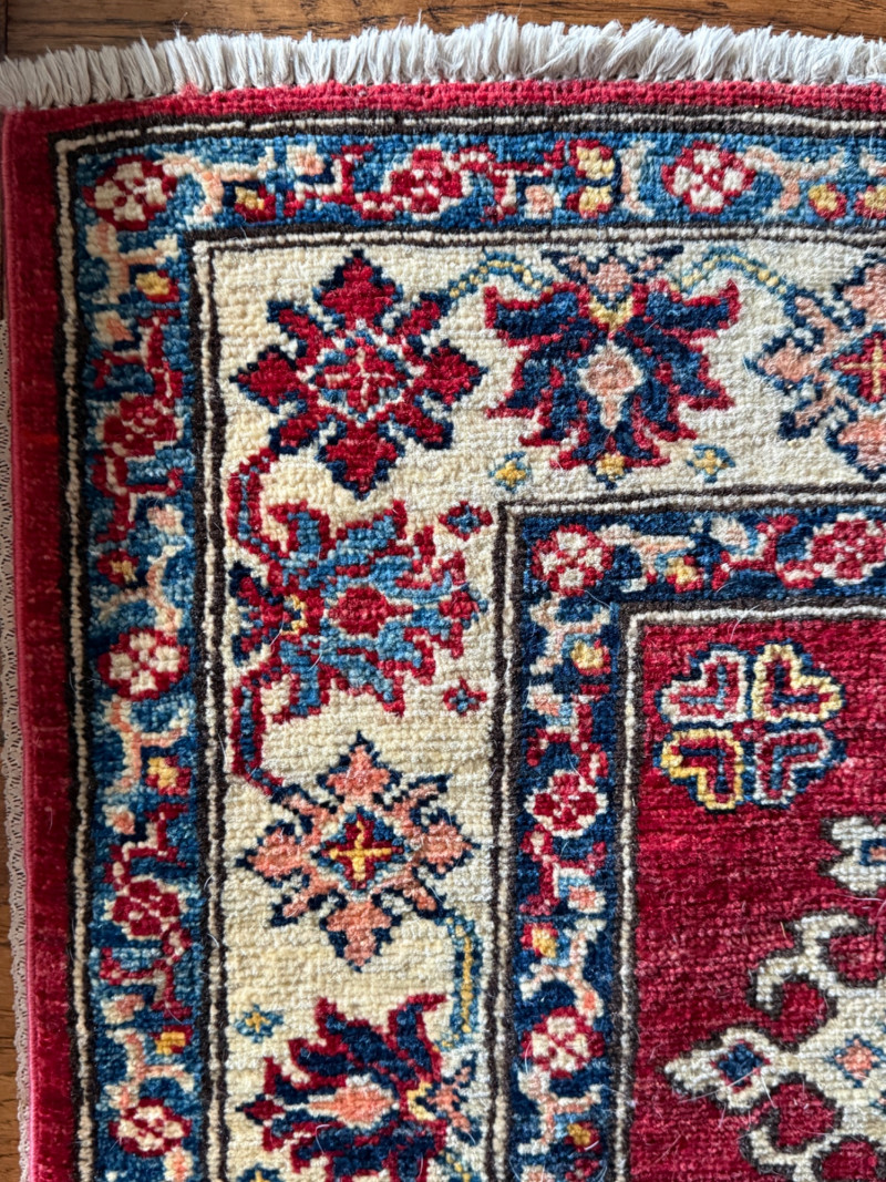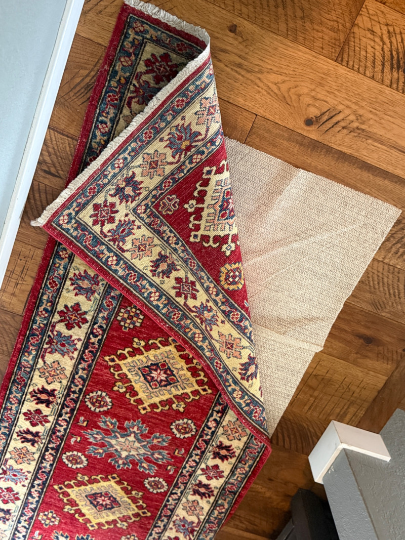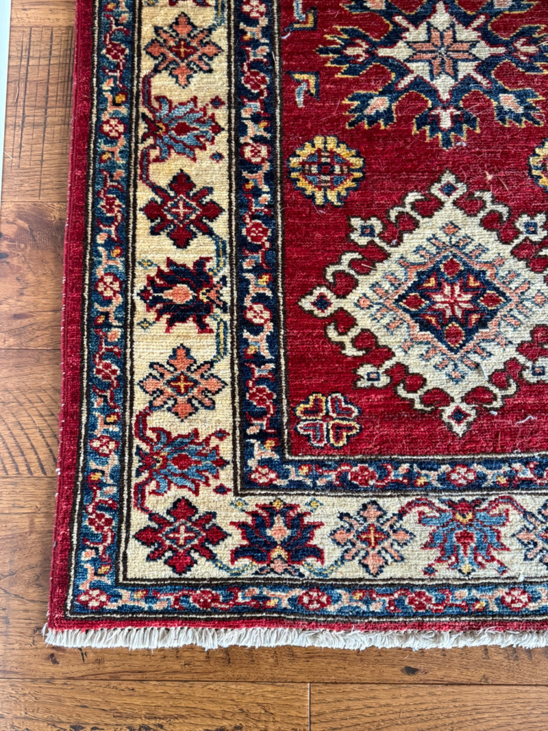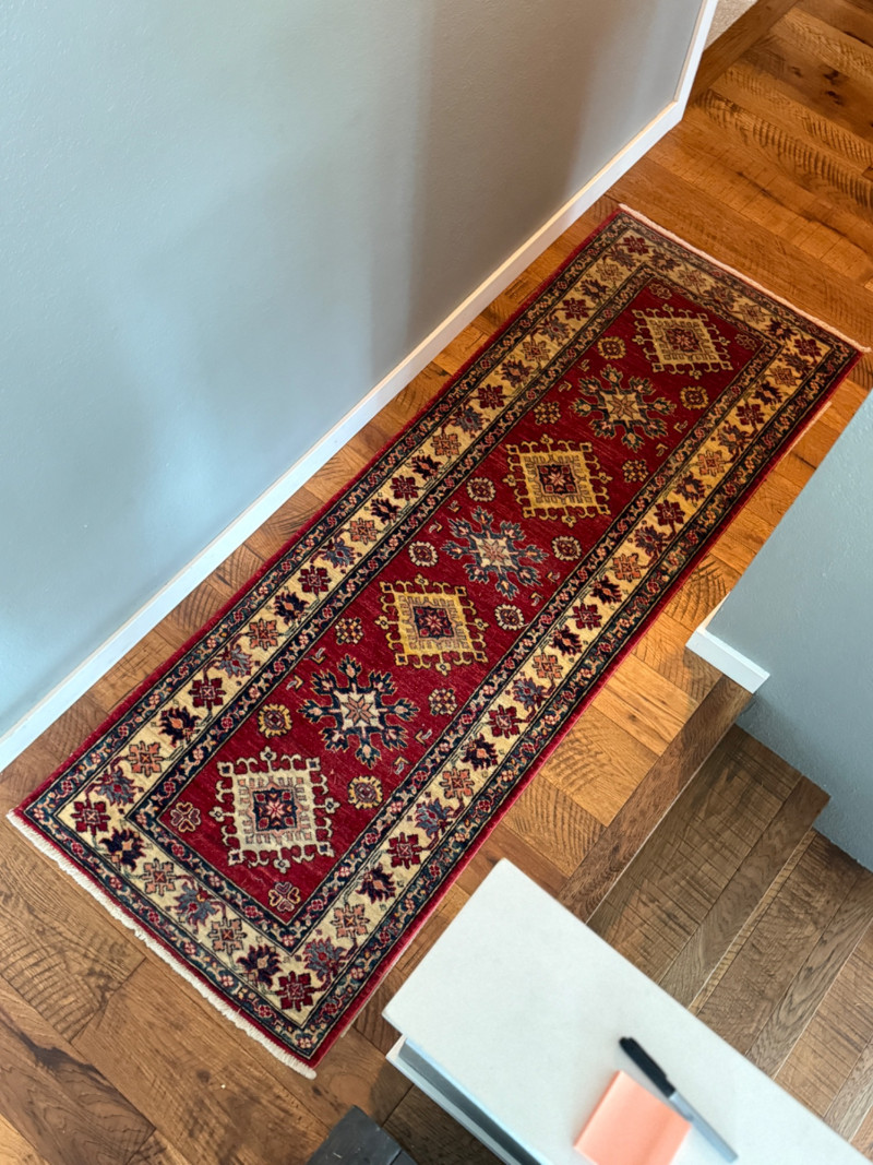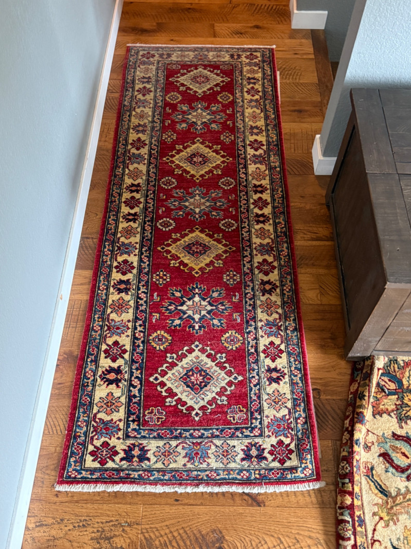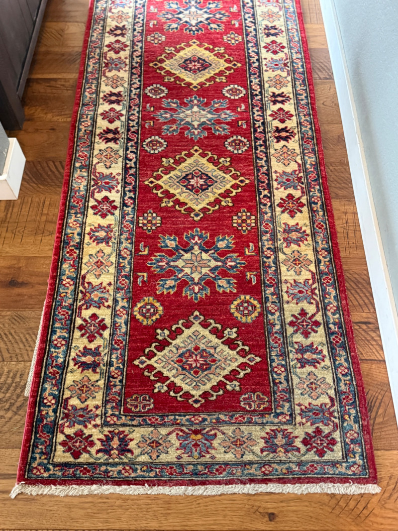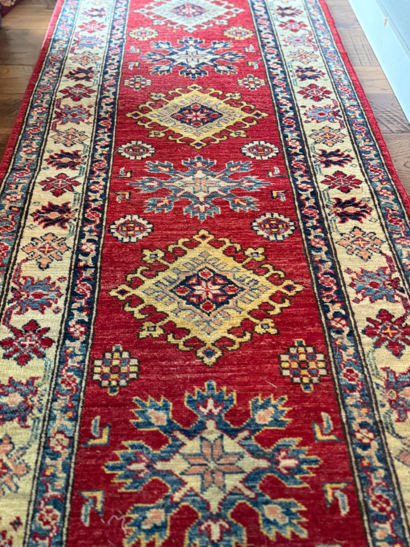 Lot # 10 - Traditional Red Kazak-Style Wool Runner Rug (with Rug Pad)