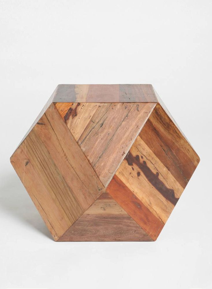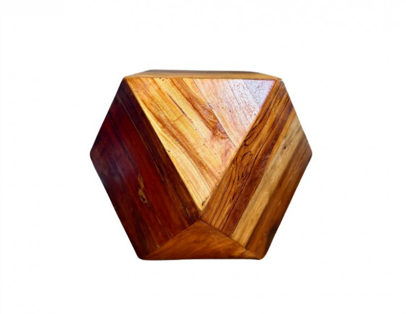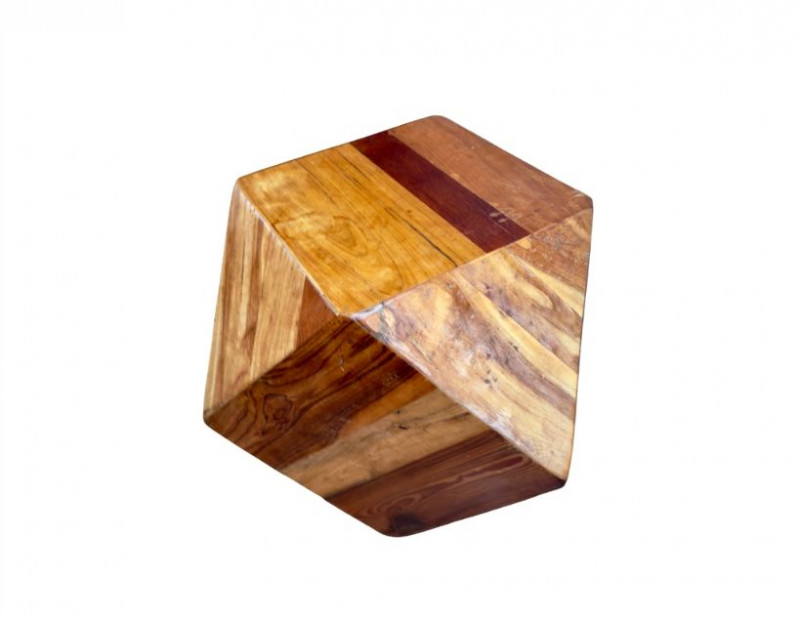 Lot # 29 - Geometric Reclaimed Wood Faceted Cube Side Table / Stool
