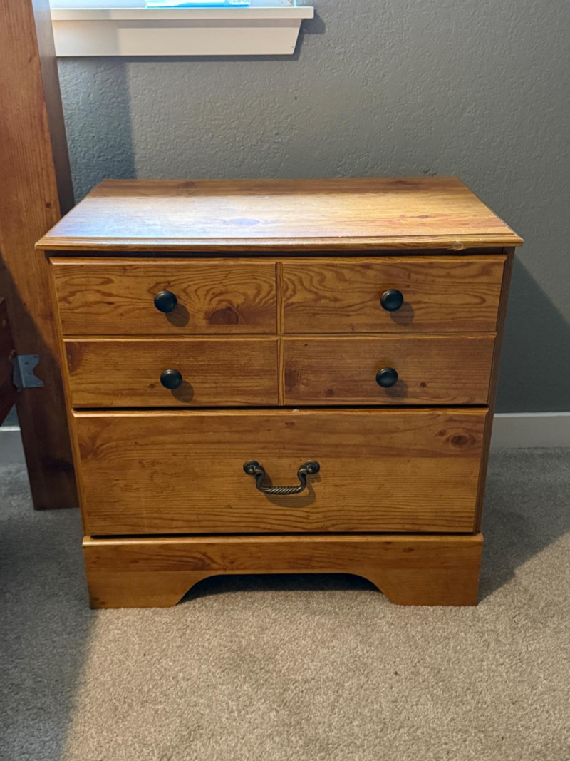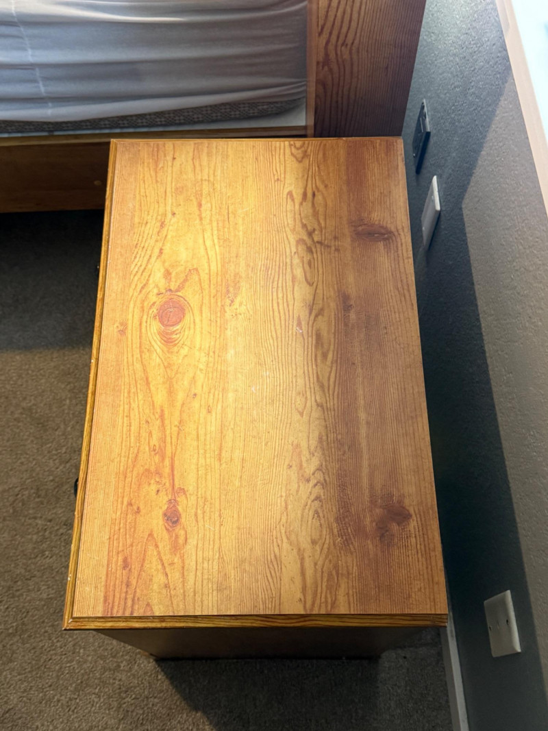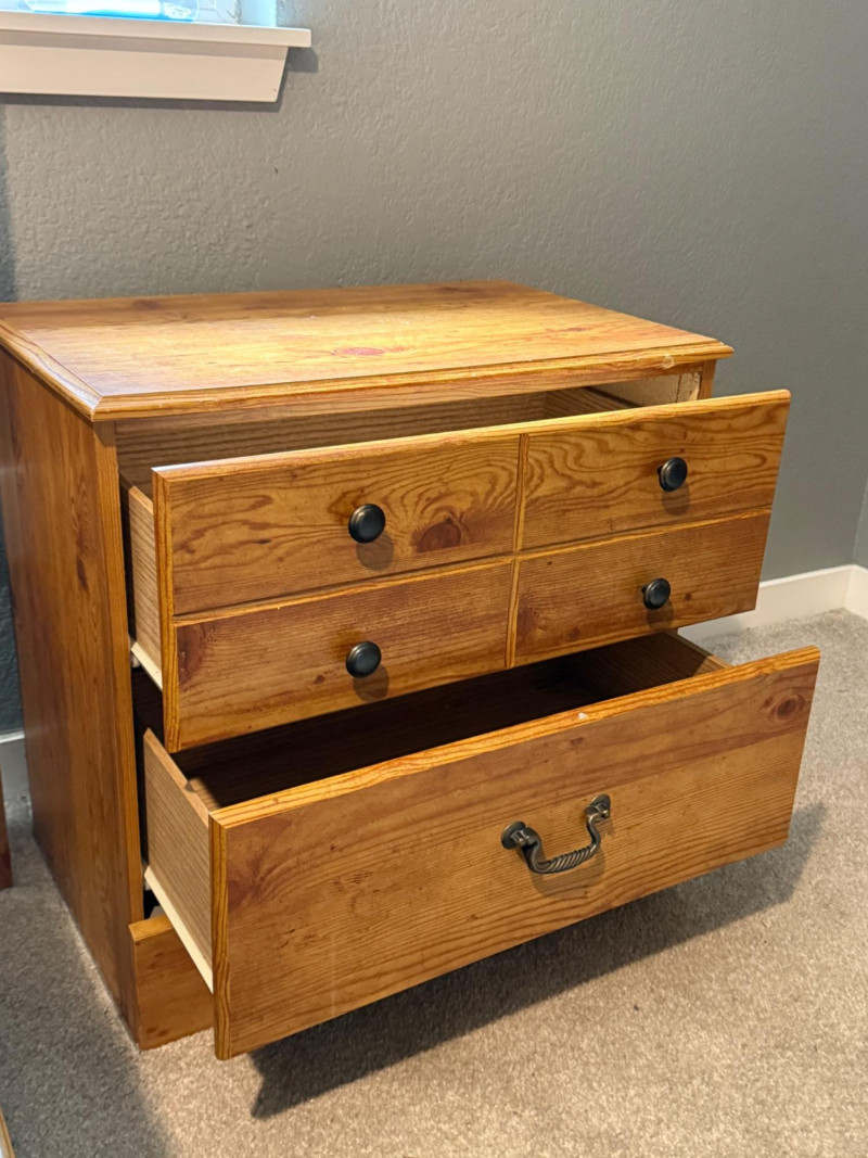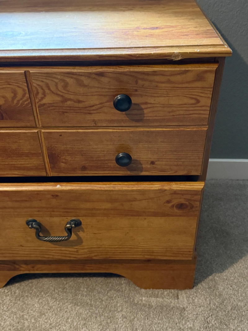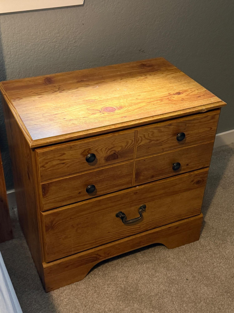 Good pre-owned condition. Light surface wear on top and edges (minor scuffs/chips visible). Drawers function properly.