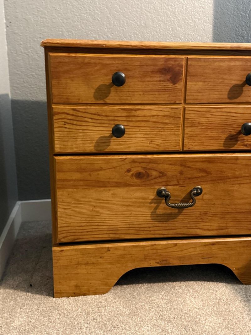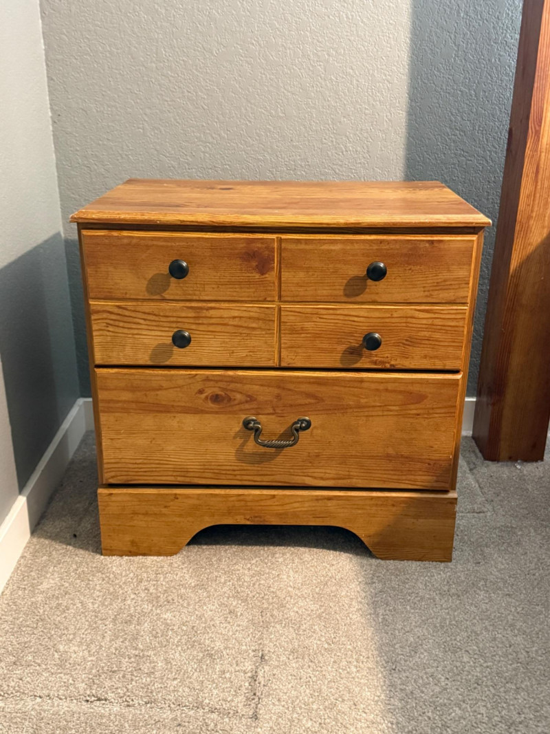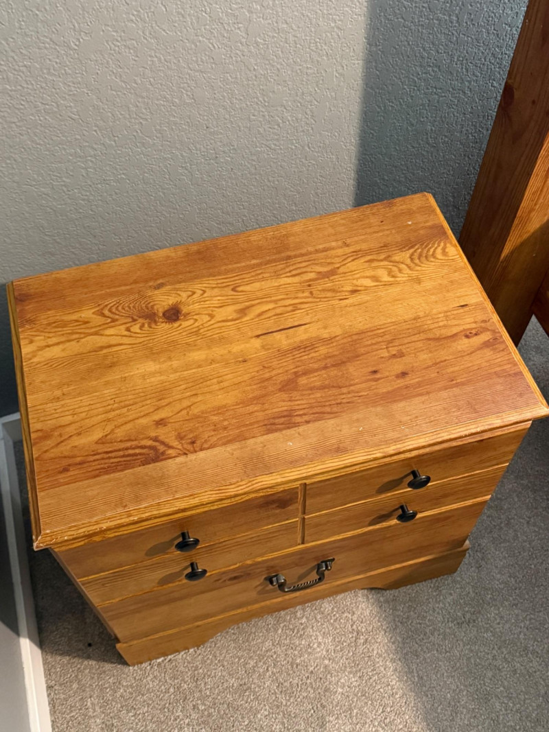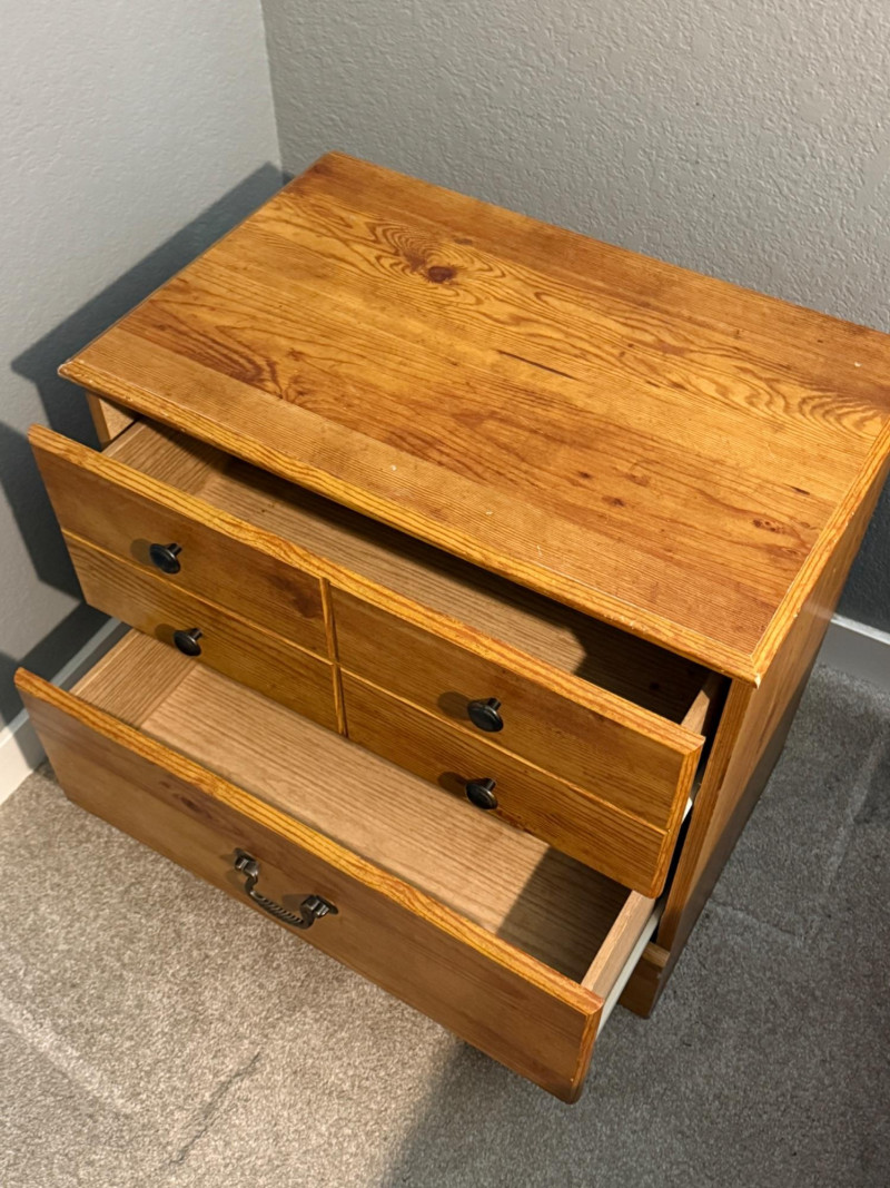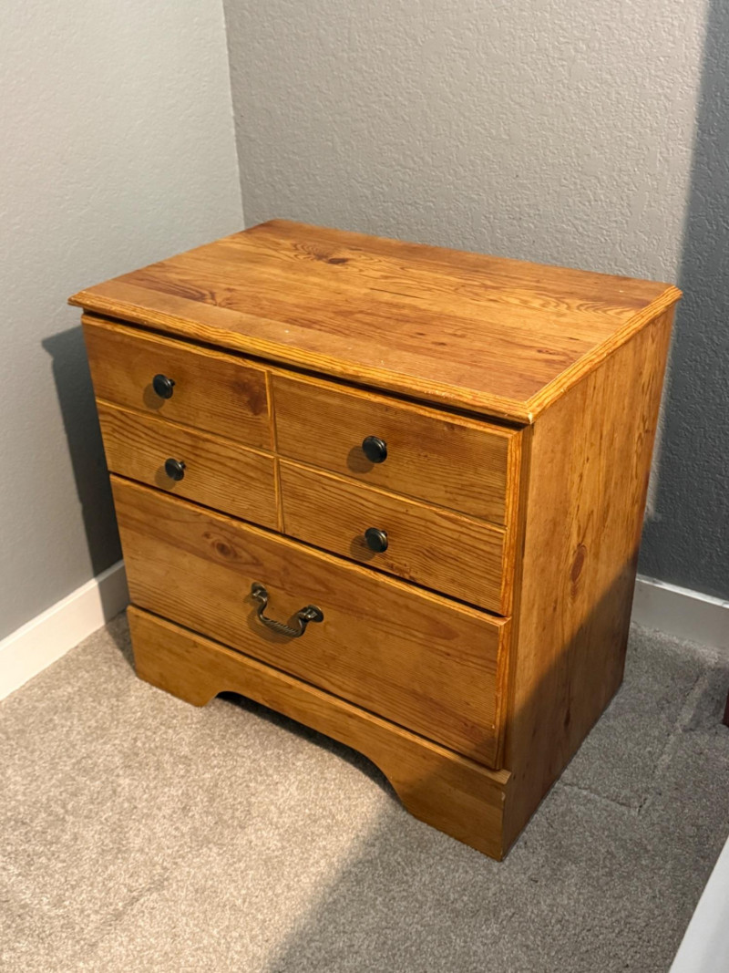 Good pre-owned condition. Light surface wear on top and edges (minor scuffs/chips visible). Drawers function properly.