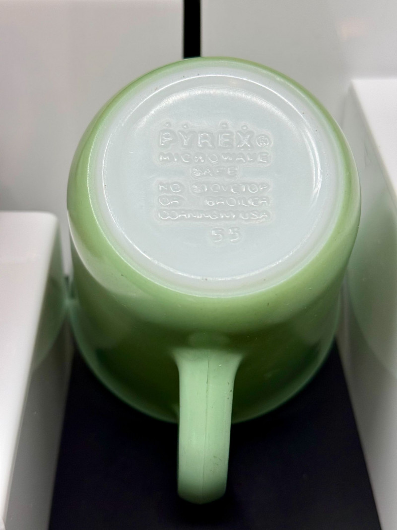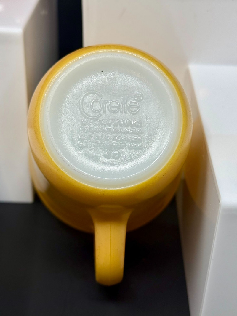 During the mid-20th century, Pyrex and CorningWare expanded beyond ovenware into everyday drinkware, introducing durable ceramic mugs in bold colors that aligned with modern kitchen design. Stackable forms and high-gloss glazes reflected the postwar focus on efficiency, color, and casual dining.