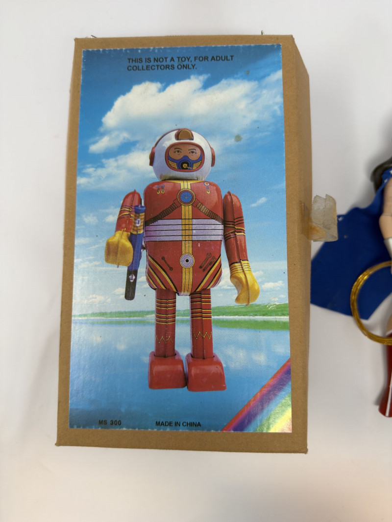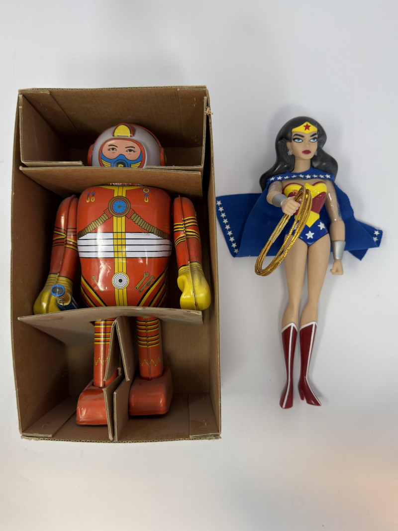 Lot # 23 - Vintage Wonder Woman Figure & Tin Robot Wind-Up Toy Lot w/ Box