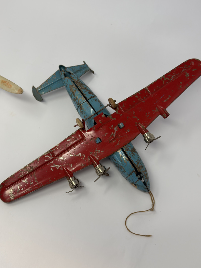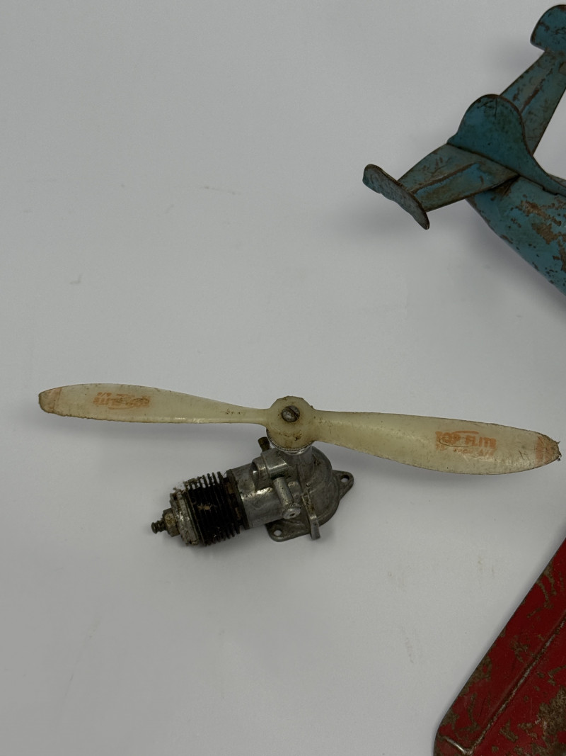 Vintage condition with heavy wear consistent with age, including paint loss, scratches, oxidation, and patina. Propeller/motor piece is detached and functionality is untested. May be incomplete. Please review photos carefully for condition details.