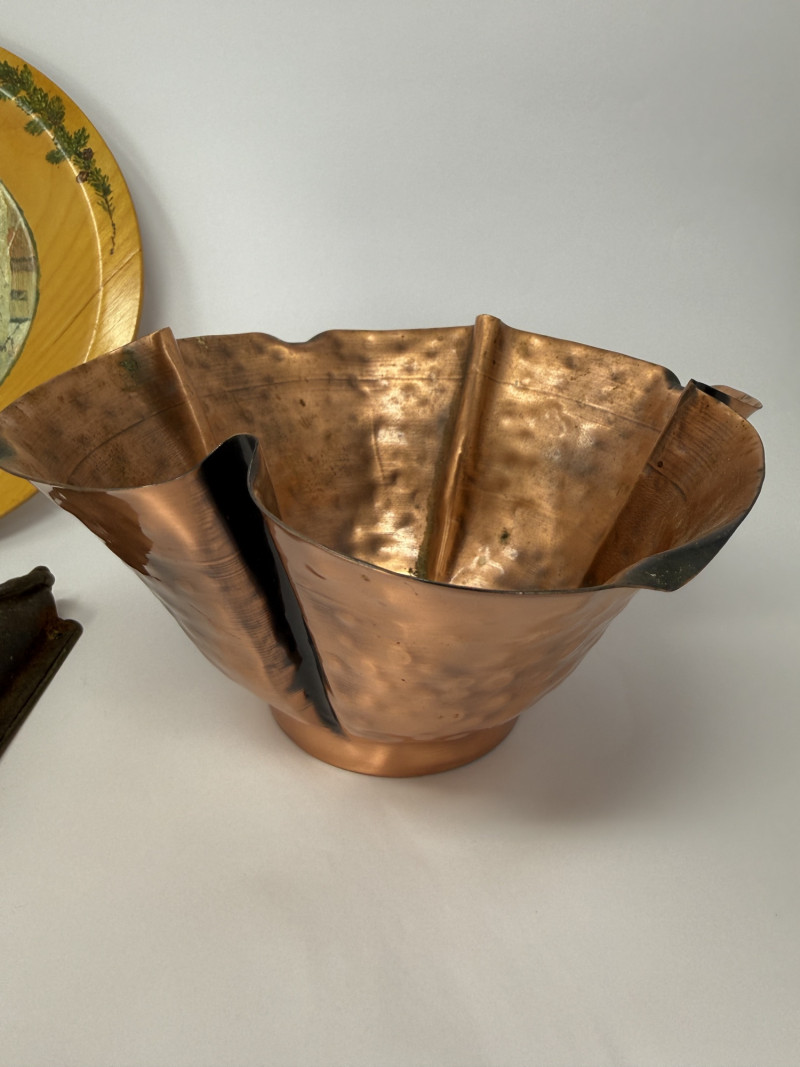 Vintage Copper Brass Decor Scale Plate Dish Lot Mixed lot of vintage copper, brass, and decorative home items, featuring a blend of rustic and farmhouse-style pieces. Includes: Condition: Measurements: Style: Notes: