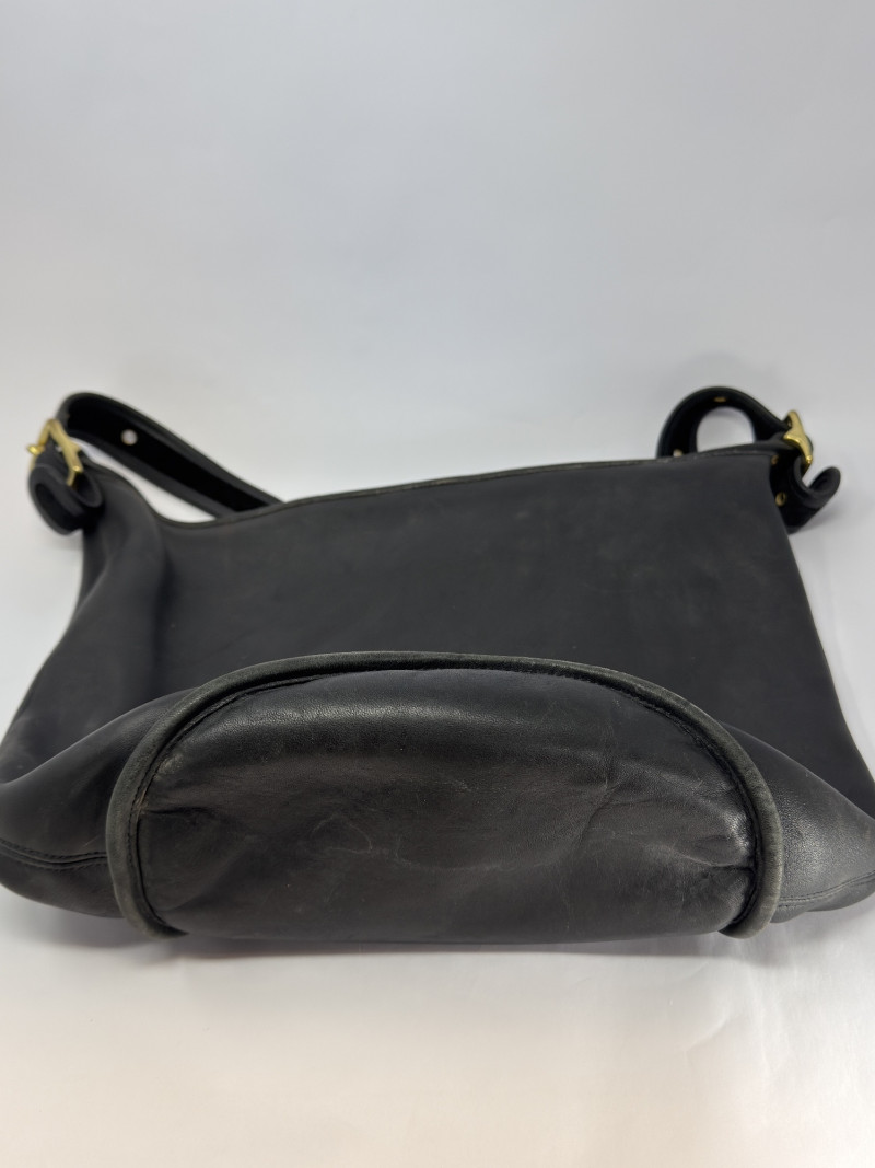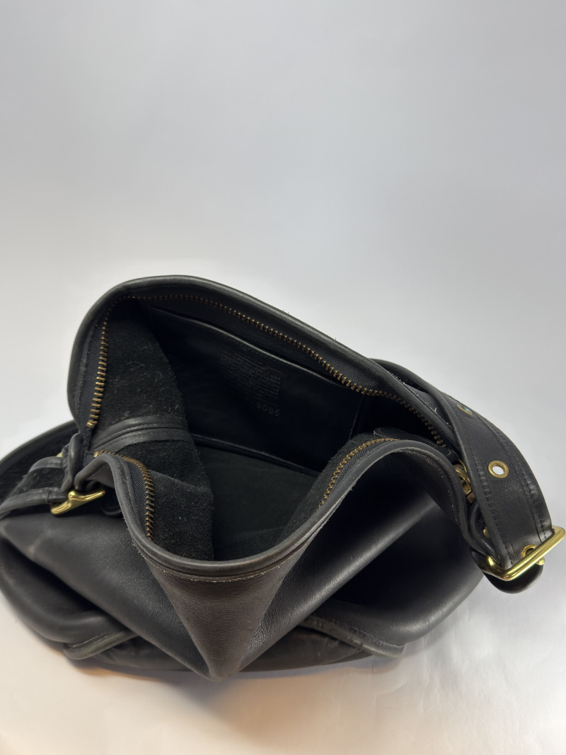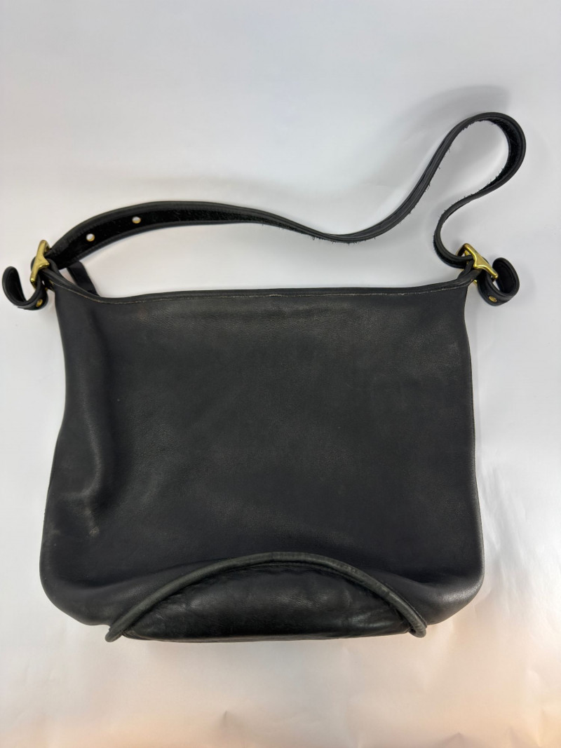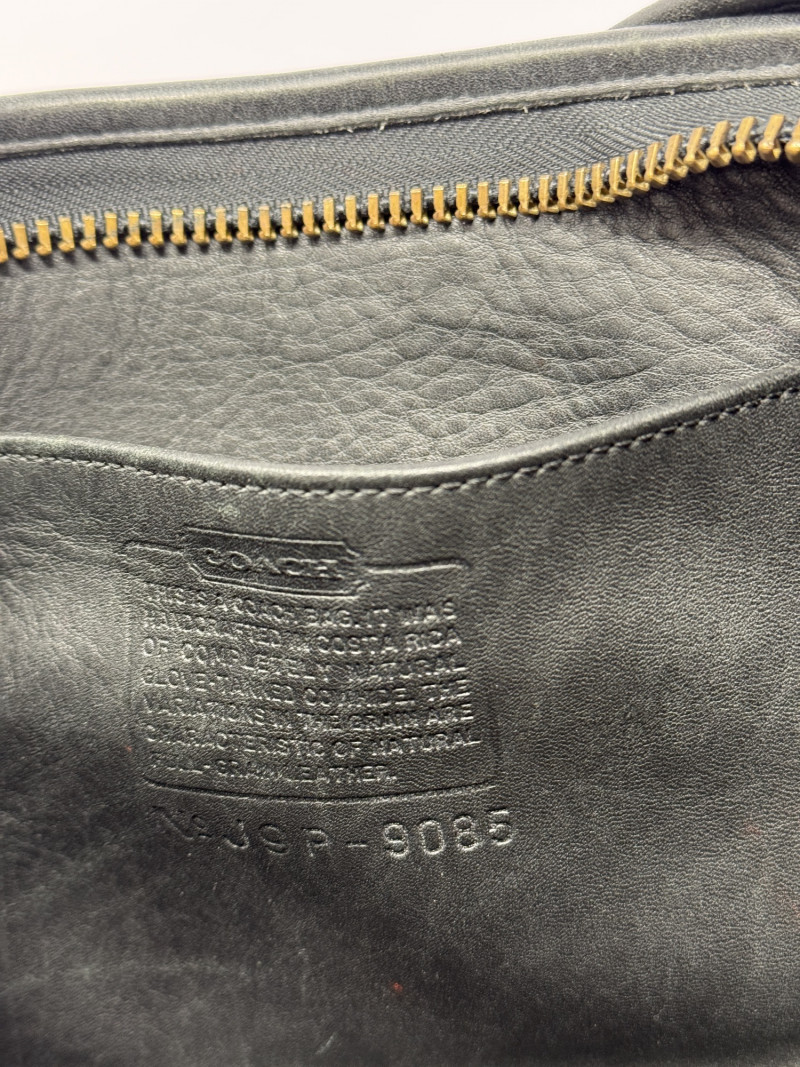 Vintage Coach Black Leather Crossbody Bag USA 9085 Vintage Coach black leather crossbody bag, made in the USA, style number 9085. Crafted from durable, high-quality glove-tanned leather, this classic Coach piece features a soft structured silhouette, adjustable strap with brass hardware, and a zip-top closure. The interior creed patch confirms authenticity and U.S. manufacturing—hallmarks of vintage Coach craftsmanship. A timeless everyday bag with that signature worn-in leather character collectors love. Condition: Measurements: Style: Notes: