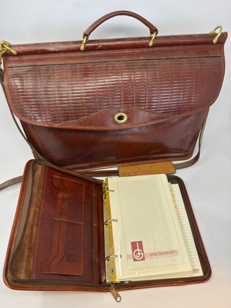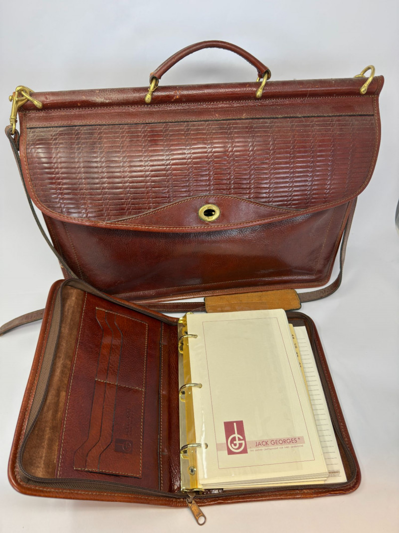 Jack Georges is known for premium leather craftsmanship. Older pieces like this are well-made and highly durable, often developing a desirable patina over time.
