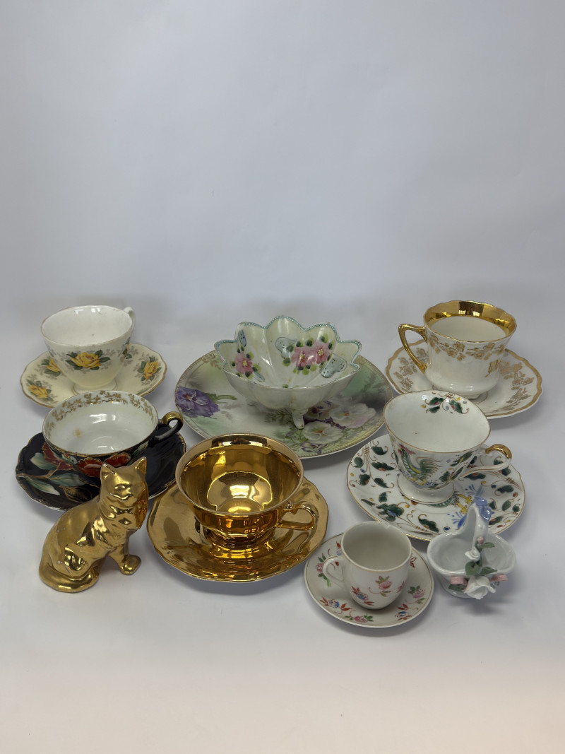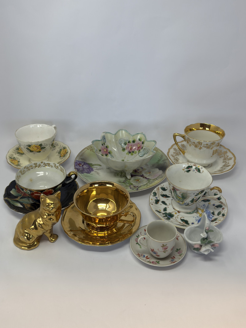 Lot # 31 - Vintage Teacups Figurines Gold Cat Decor Lot Set