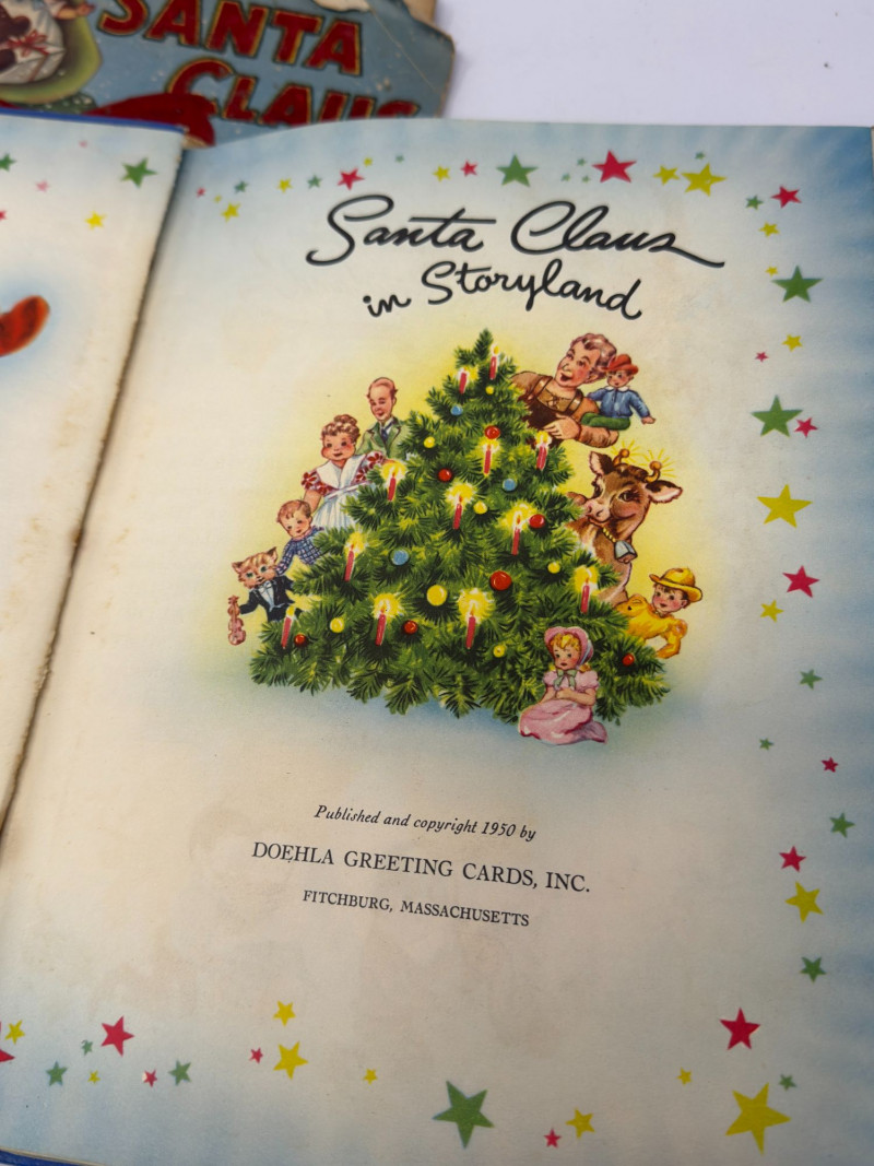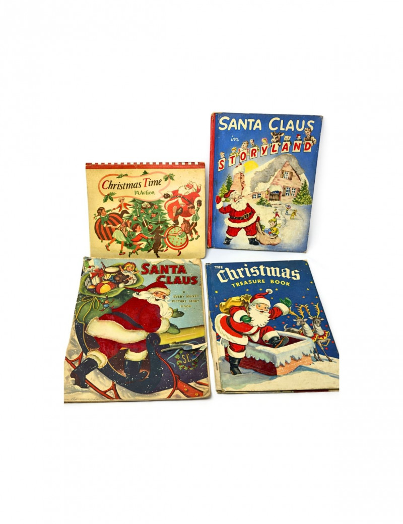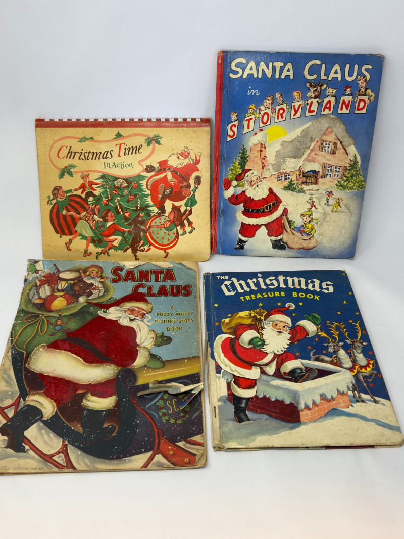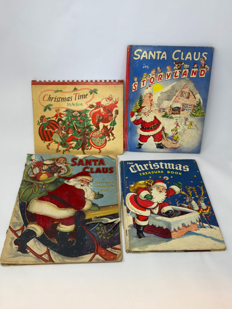 Charming lot of vintage Christmas children’s books, featuring classic Santa Claus themes, colorful illustrations, and a standout pop-up book. Includes titles such as Santa Claus in Storyland, Christmas Time in Action, and other mid-century holiday storybooks. These books capture nostalgic holiday scenes with bright artwork, festive characters, and traditional storytelling. The pop-up book adds extra appeal with dimensional Santa imagery, making this a great display or collector’s piece. Perfect for collectors of vintage children’s books, holiday décor, or Christmas memorabilia. Condition: Measurements: Style: Notes: