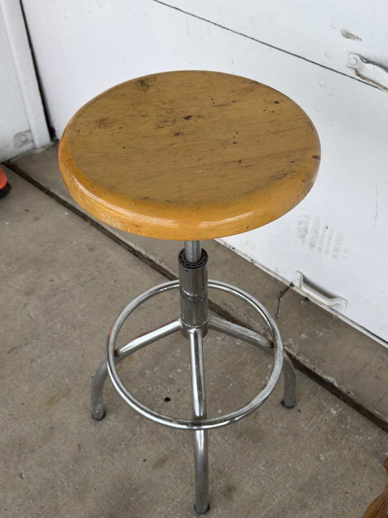 Lot # 40 - Vintage Industrial Stool & Wood Bar Stool Pair