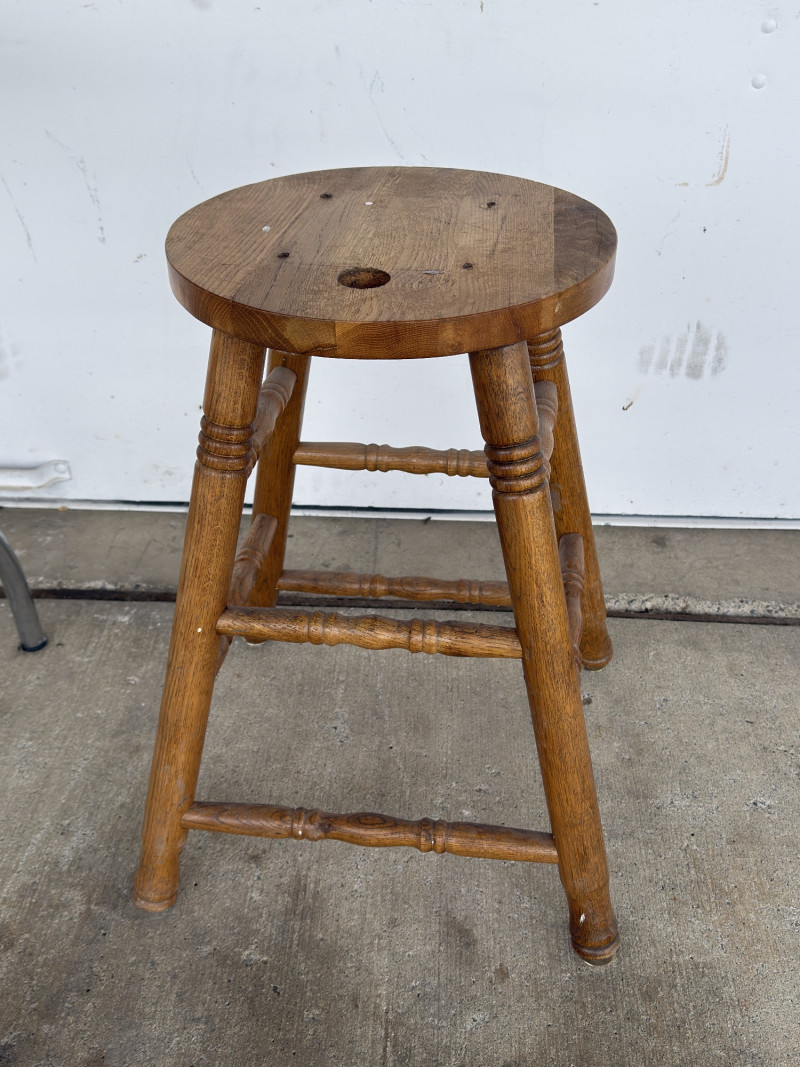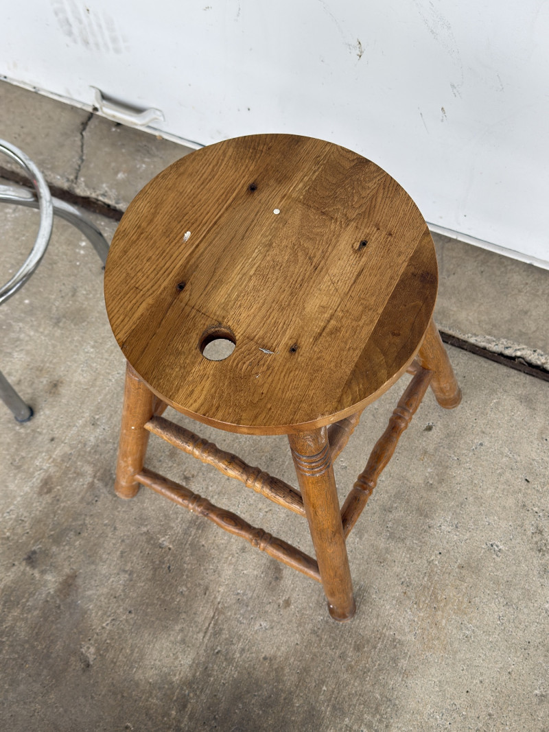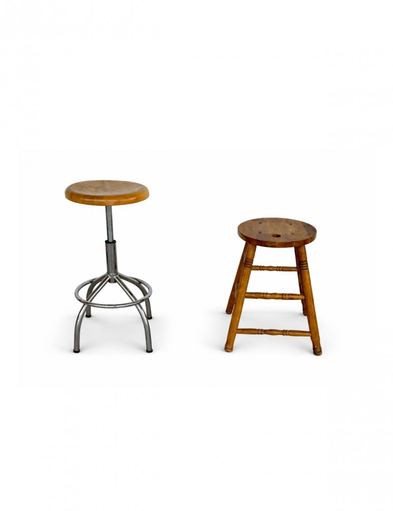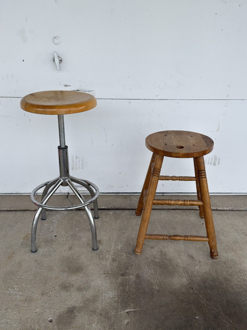 Vintage Industrial Stool & Wood Bar Stool Pair Set of two vintage stools featuring industrial and traditional styles, perfect for mixed decor or functional use. Includes: Great for: Condition: Style: Value Estimate: $60–150 for the pair