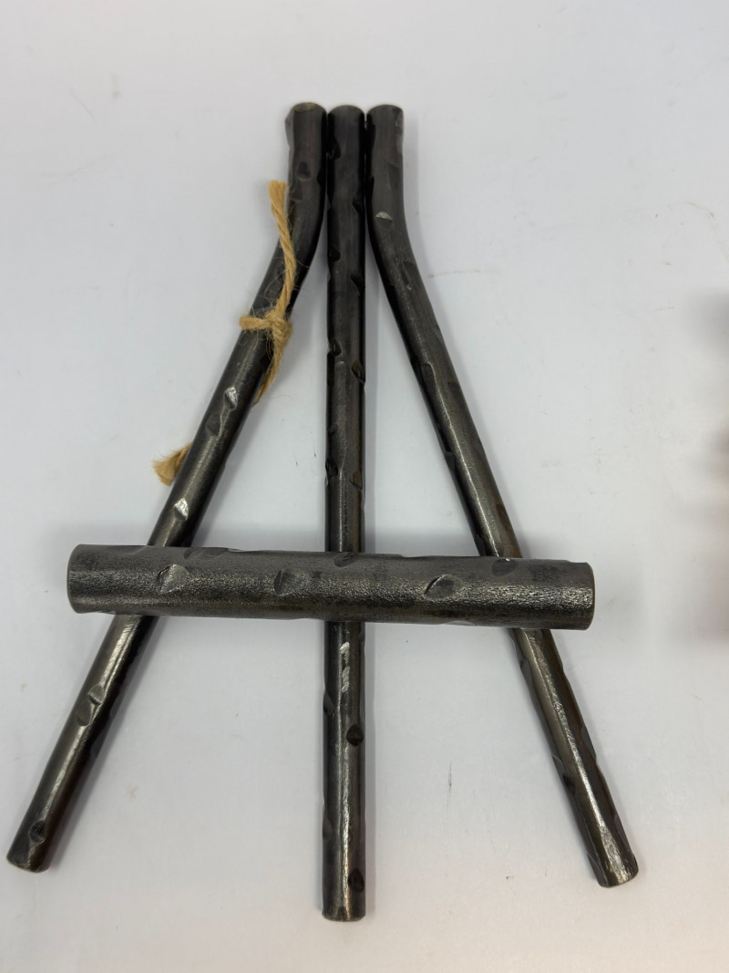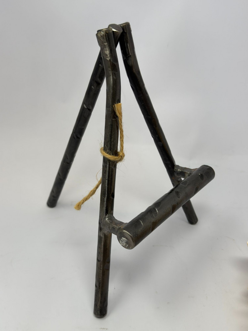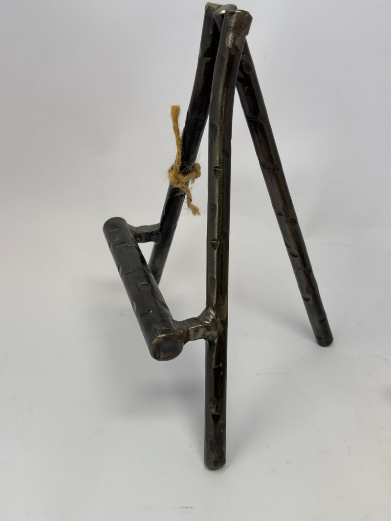 Good vintage condition. Shell shows natural wear and minor imperfections typical of organic material. Metal easel shows age-related wear and patina.