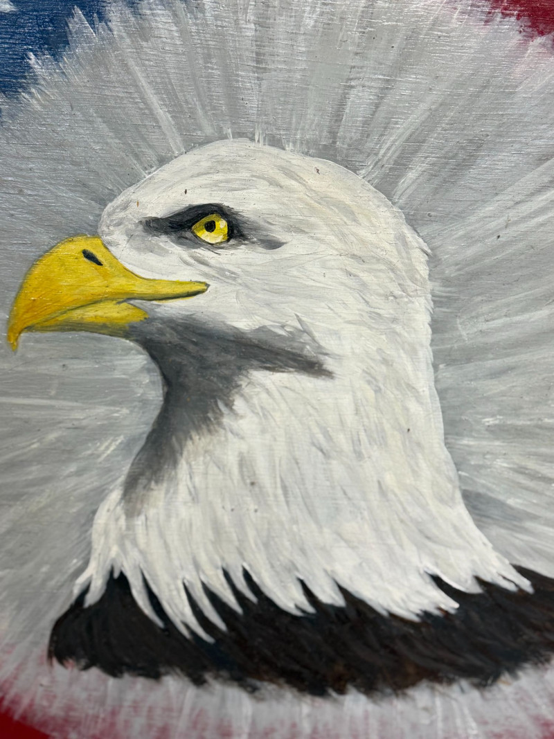 Lot # 57 - Large Hand Painted American Flag Eagle Wood Wall Art