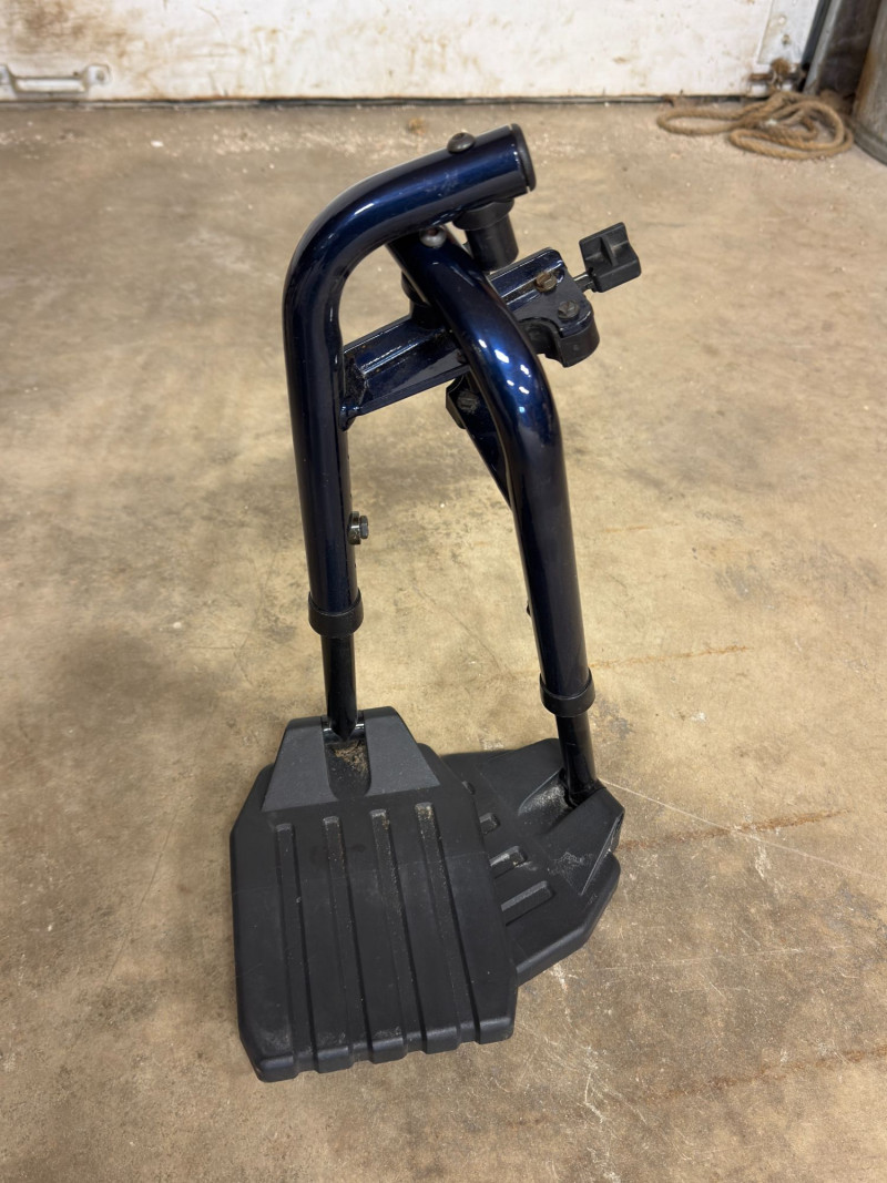 Good pre-owned condition. Shows light wear from normal use including minor scuffs and dust on frame and wheels. Upholstery is intact with no major damage. Overall clean and fully functional.