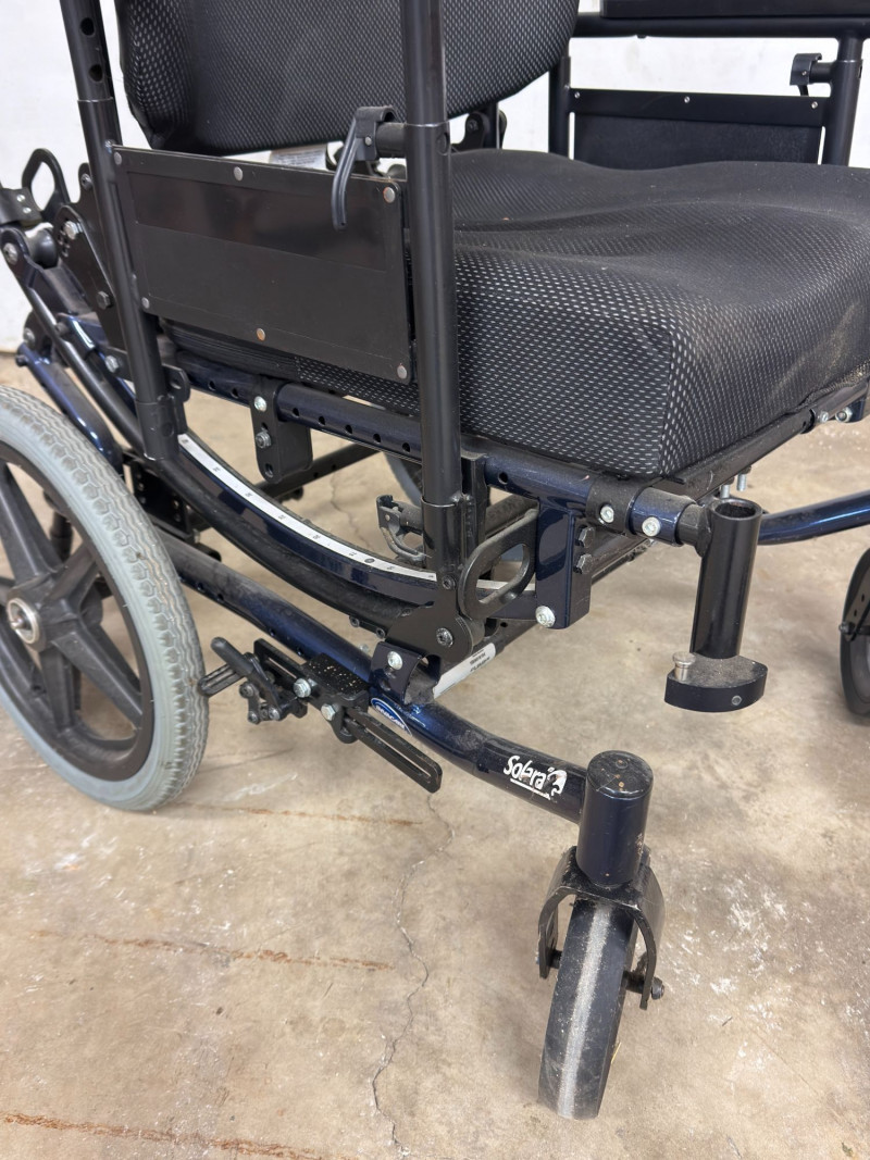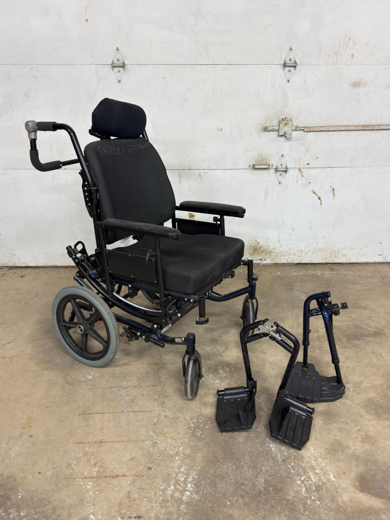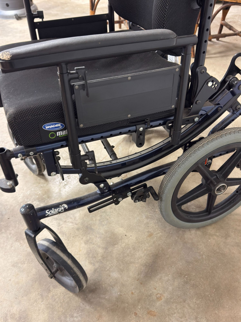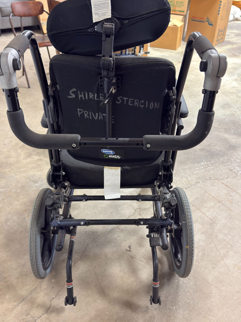 High-quality Invacare manual wheelchair featuring a Matrx PB pressure-relief backrest, designed for comfort, support, and adjustability. This chair is built with a durable frame and offers multiple adjustment points, making it ideal for long-term use or specialized mobility needs. Includes detachable/adjustable elevating footrests (shown separately), padded armrests, and a supportive cushioned seat and back system. The Matrx PB back is known for ergonomic support and pressure distribution, commonly used in clinical and home care settings. The chair has solid construction with smooth-rolling rear wheels and front casters, along with multiple positioning adjustments for user comfort. Condition: Key Features: Est. $1500