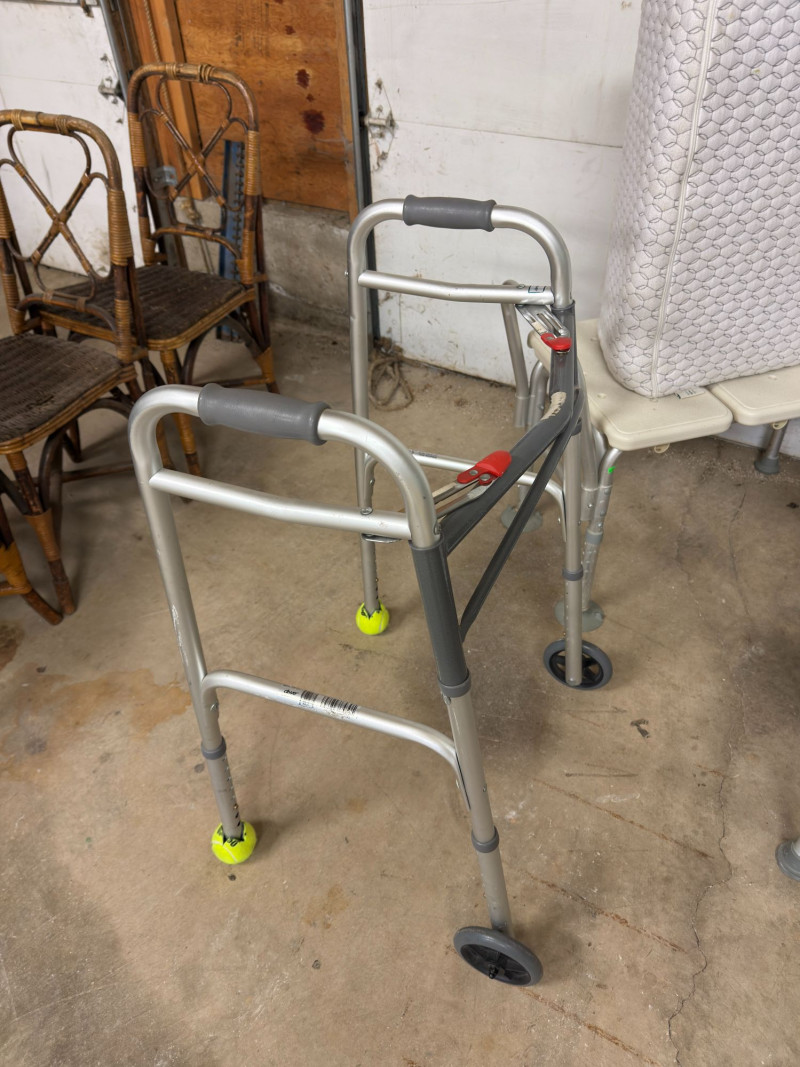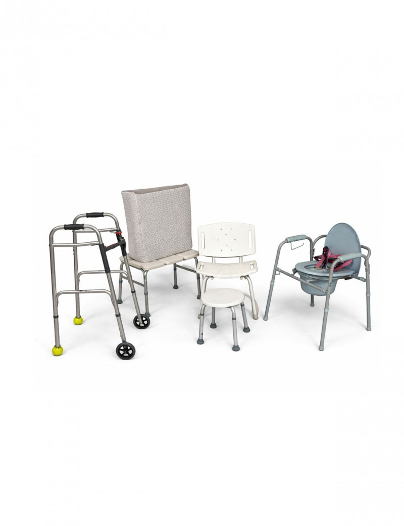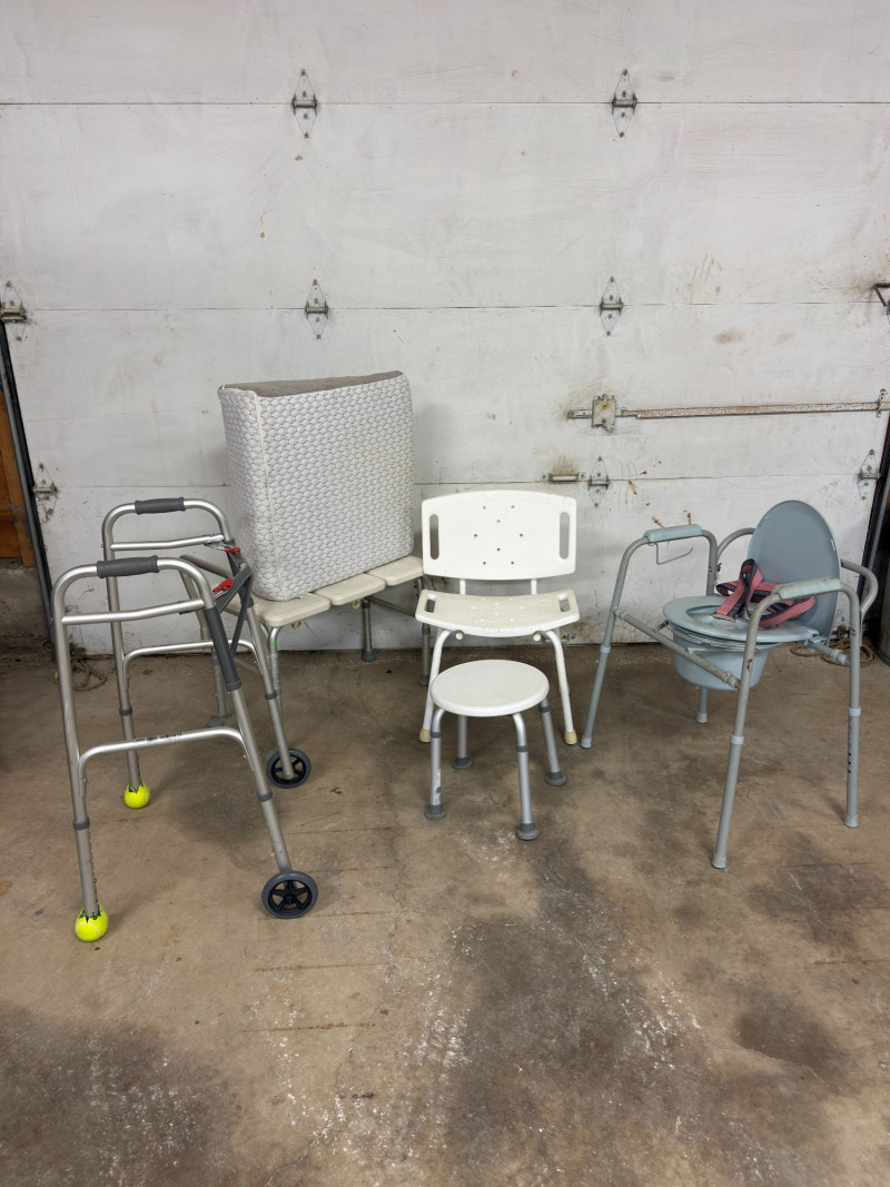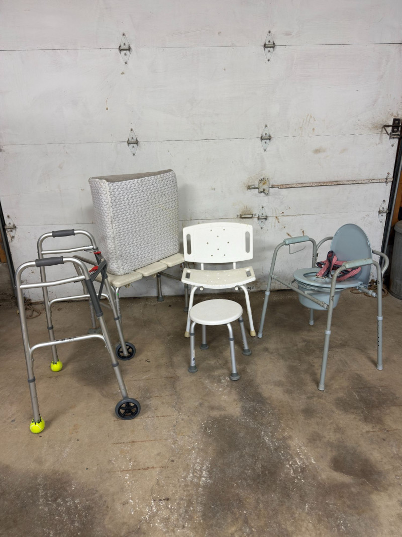 Large mixed lot of medical mobility and bath safety equipment, ideal for home care, resale, or assisted living use. This bundle includes a variety of essential support items designed to improve safety and accessibility in daily routines. Items included: All pieces feature lightweight but sturdy metal frames with non-slip rubber feet. The walker includes wheels for easy mobility, while the seating options are designed for stability and comfort in bathroom or recovery settings. Condition: Great bulk lot for caregivers, resellers, or anyone setting up a home care environment. Estimated Value: