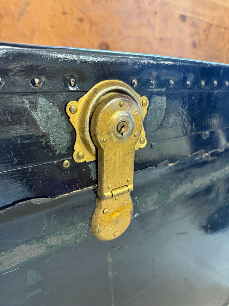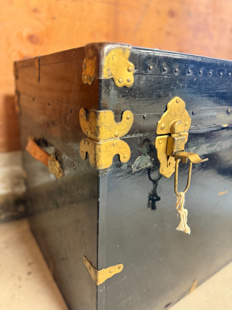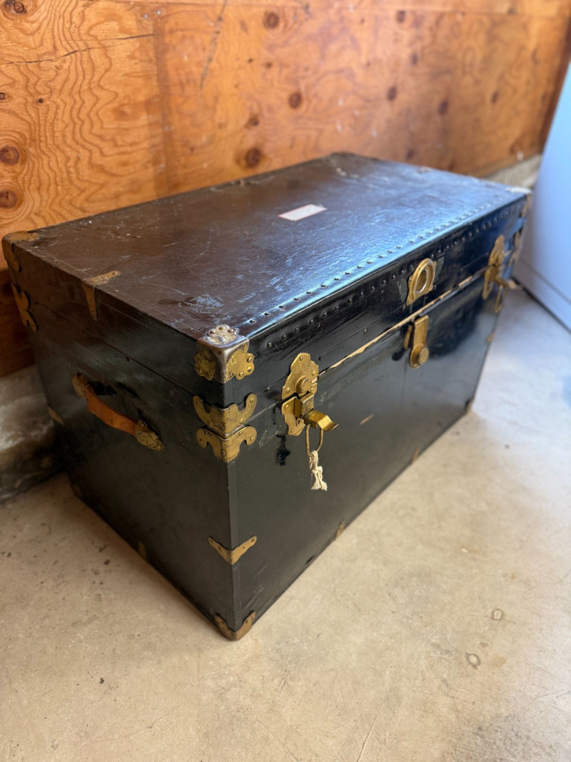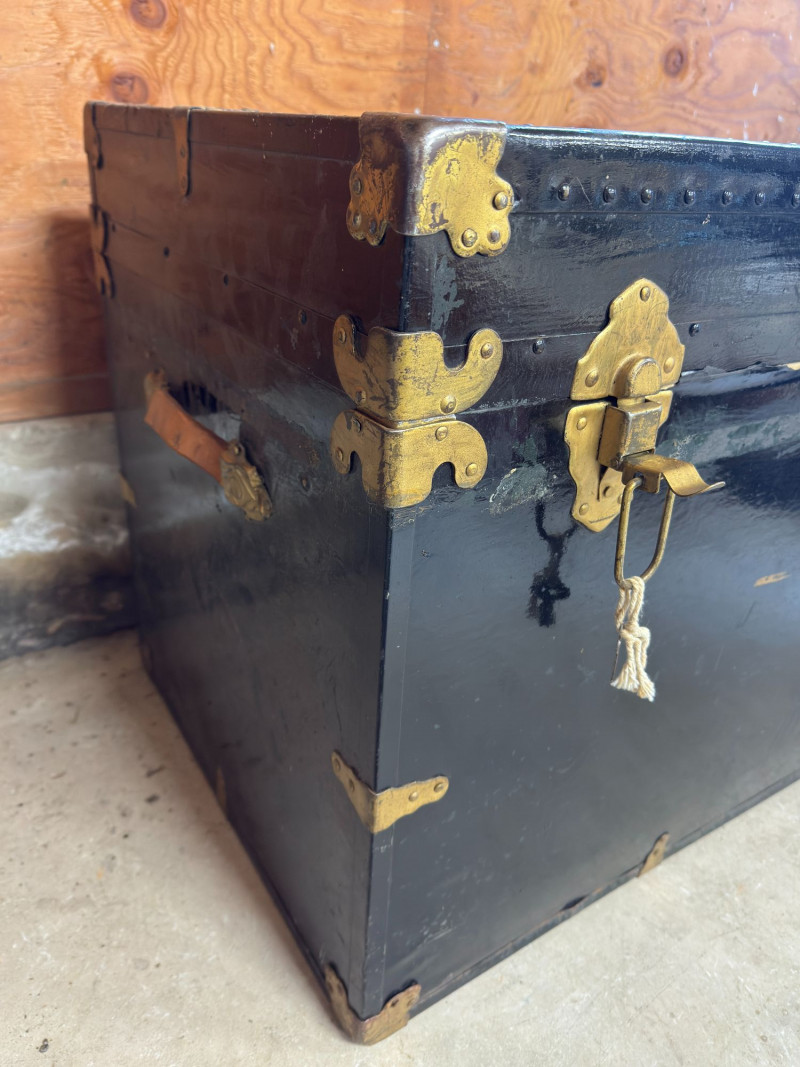 Lot # 69 - Vintage Black Steamer Trunk Chest – Brass Hardware – Storage