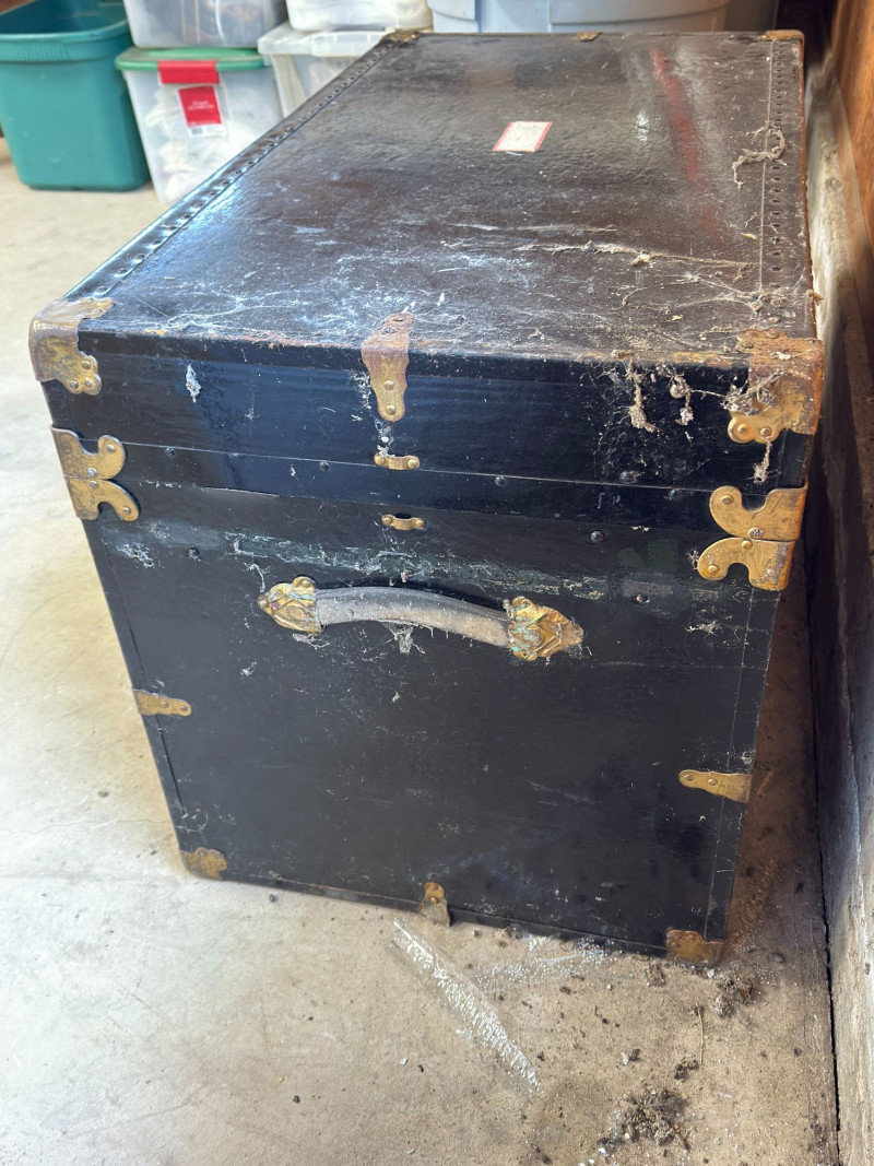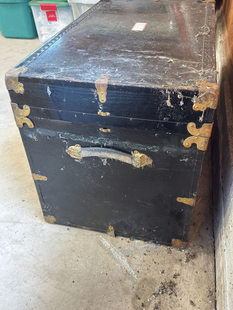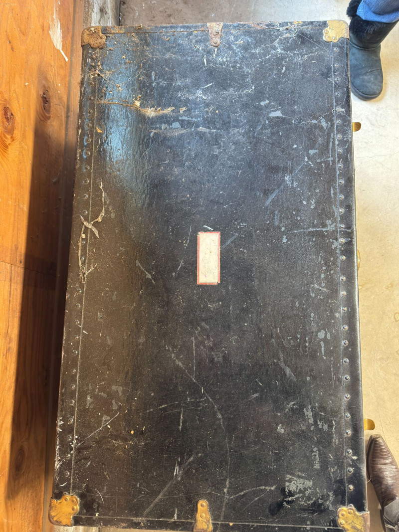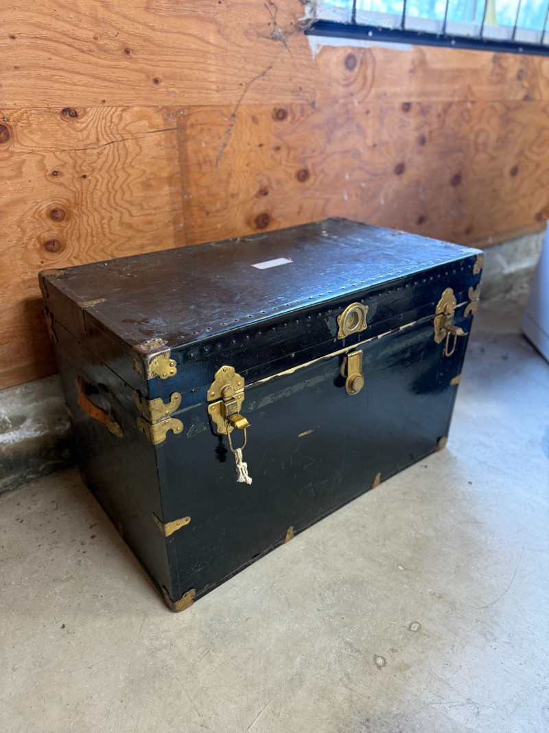 Lot # 69 - Vintage Black Steamer Trunk Chest – Brass Hardware – Storage