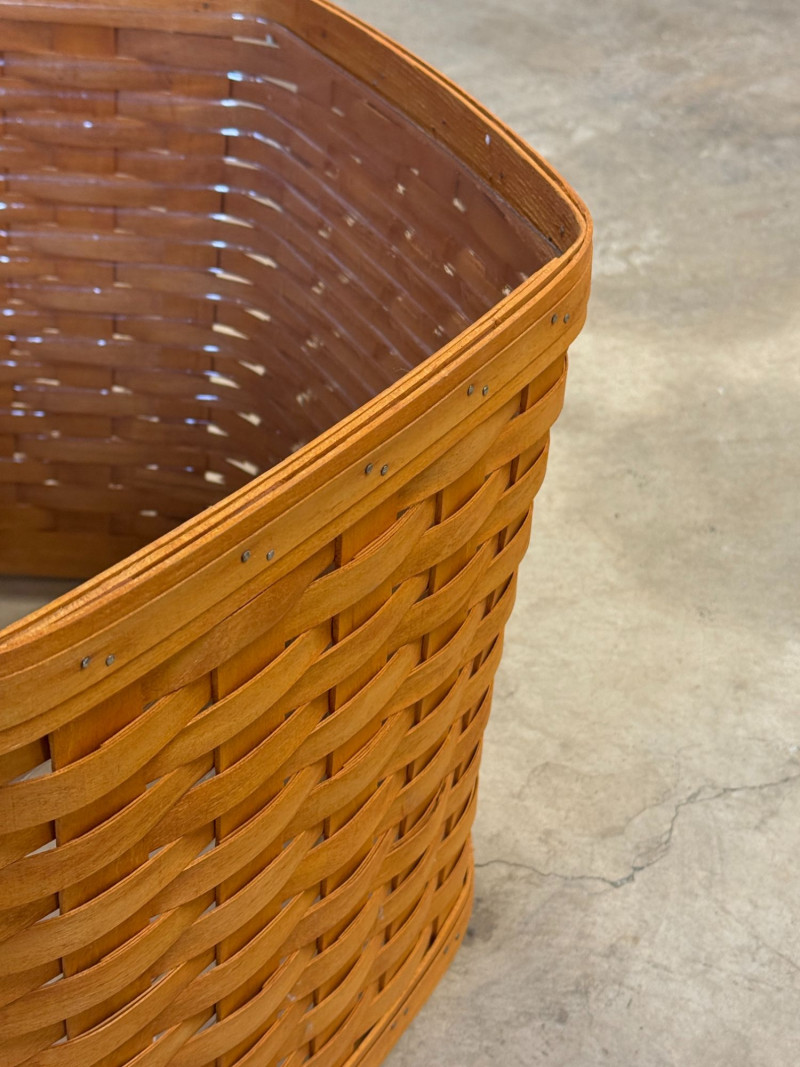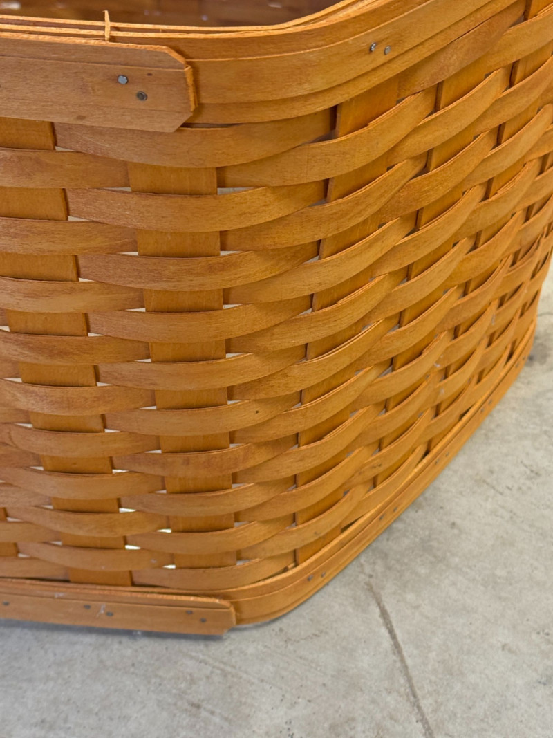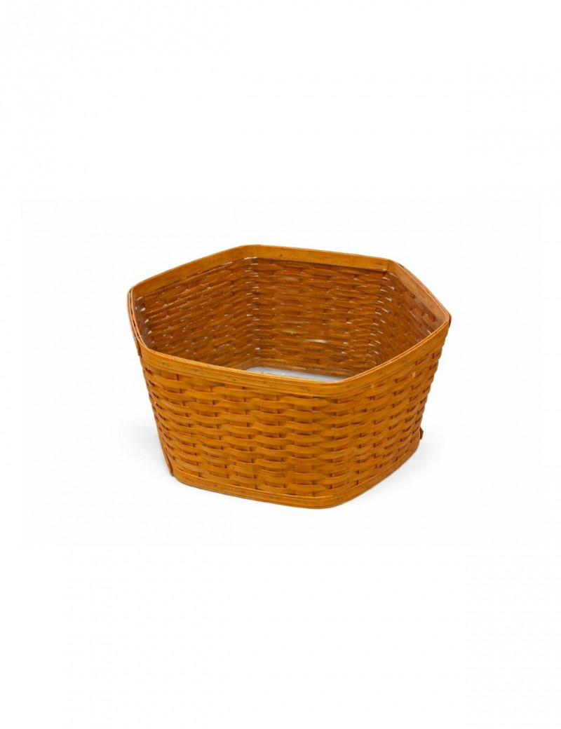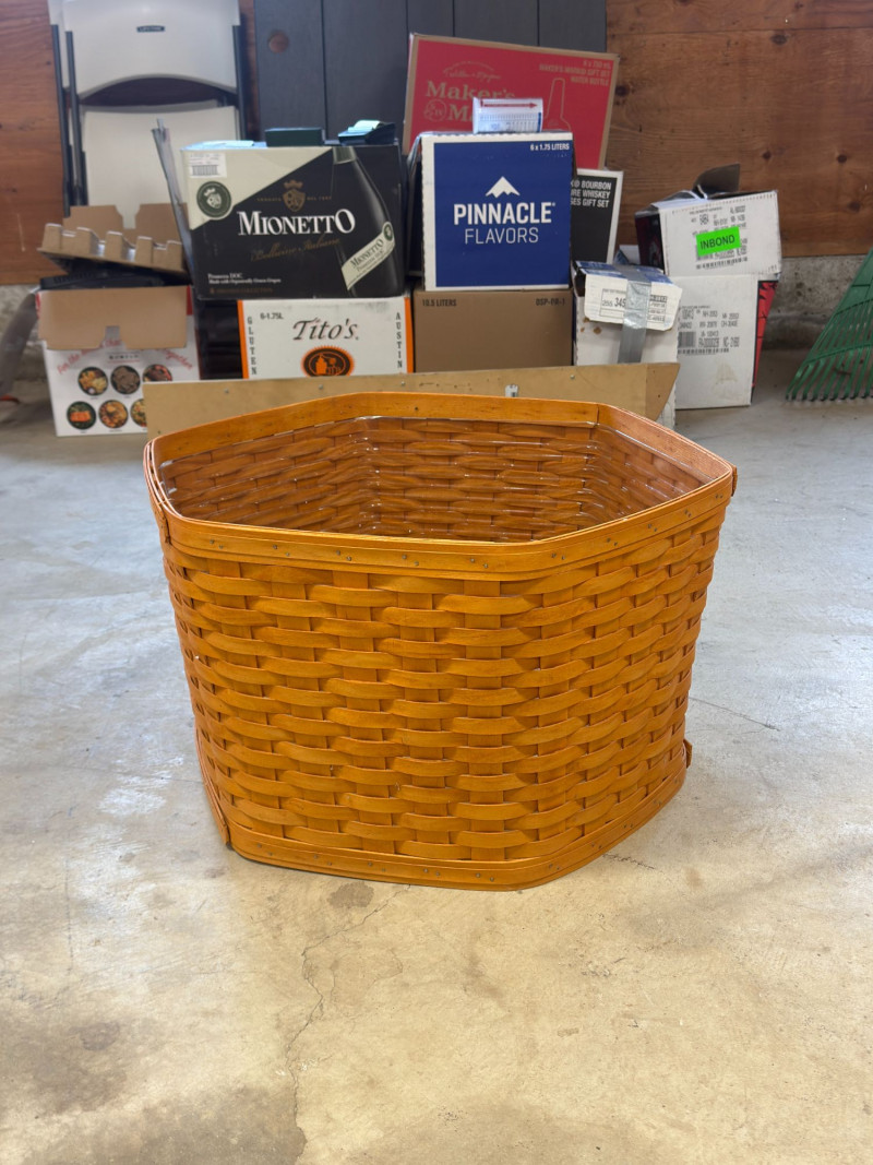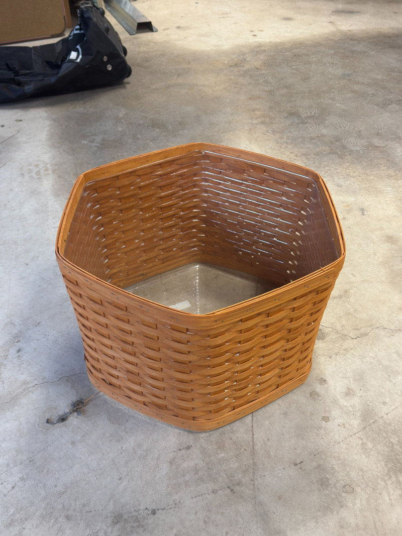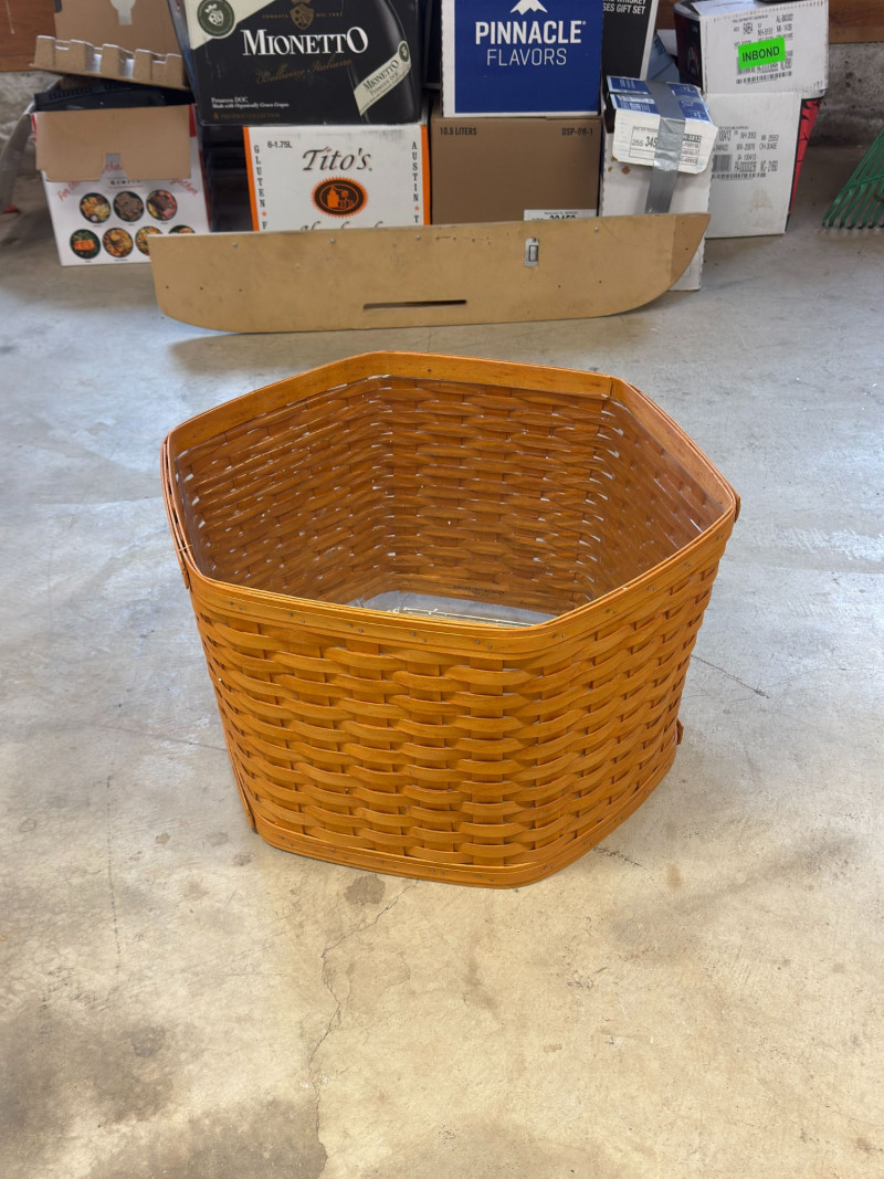 Authentic Longaberger Sunroom Sleeve basket featuring a unique six-sided hexagon shape and classic woven maple construction. Designed as a decorative planter sleeve, this versatile piece can also be used for storage or display. The basket showcases Longaberger’s signature tight weave and warm honey-toned finish, making it a great addition to farmhouse, cottage, or traditional decor styles. Perfect for use as a plant holder, blanket storage, or decorative accent piece. Features: Condition: Approx Dimensions: Historical Note & Estimated Value: Estimated value: $150-$200