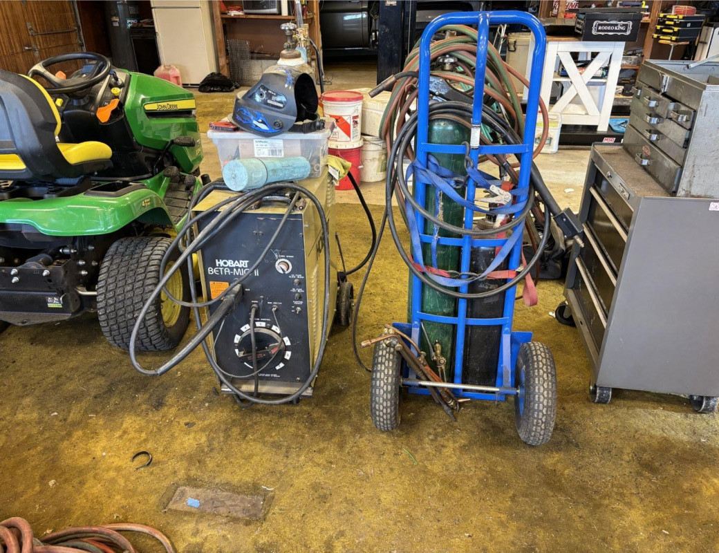 Hobart Beta-MIG Welder + Oxy/Acetylene Torch Setup w/ Tanks, Cart & Accessories Complete welding setup featuring a Hobart Beta-MIG welder paired with a full oxy/acetylene torch system, tanks, hoses, and accessories. This is a great all-in-one package for a home shop, farm, or professional use.